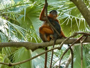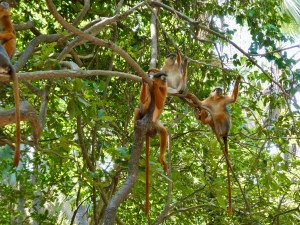 And something I did not know. Red colubus monkeys are not fond of bananas, but they do like peanuts. In addition, the monkeys are very shy and even if you have peanuts to give they are very, very reticent to come near you. When they move from tree to tree they literally spring across the ground and bound up into the trees or they swing from a branch and do not come down.