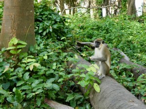 But on the flip side, we had the green monkeys who proved to be hungry, greedily little buggers who would eat you out of house and home if they could. As we walked along the path, the green monkeys followed us with their hands out and as soon as we pulled out a piece of banana and put it near one of them, the monkey would grab for it, peel it and eat it before we even had a chance to move on.
