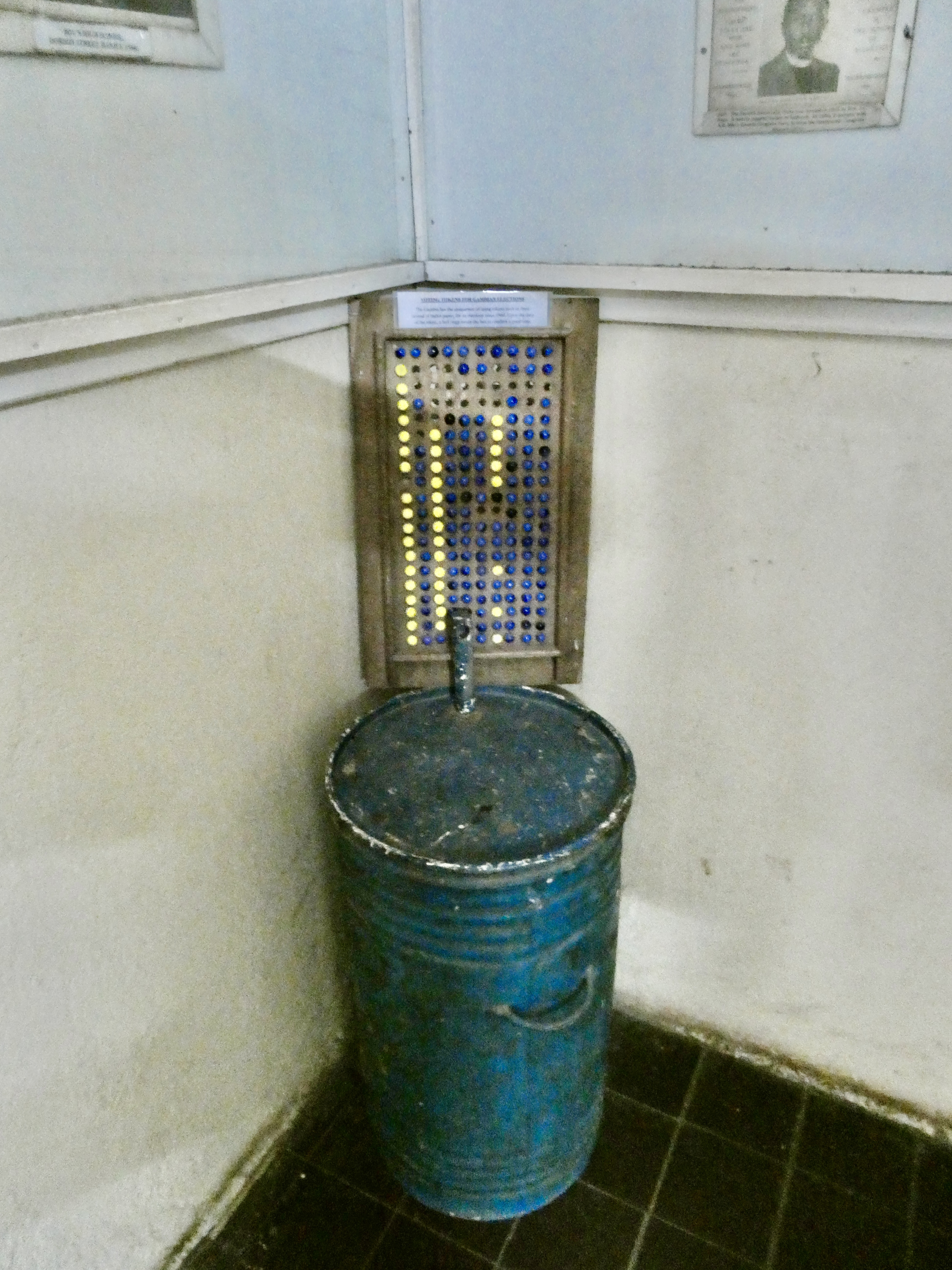 So after wandering the first floor, we moved to the second floor which featured The Gambia’s archeological history with displays of the Wassau circles and earthen pots discovered during archeological digs. There were also displays about The Gambia’s colonial and post-colonial history and the introduction of Islam. However, for me the most interesting display was the voting bin and voting marbles associated with The Gambian election process.