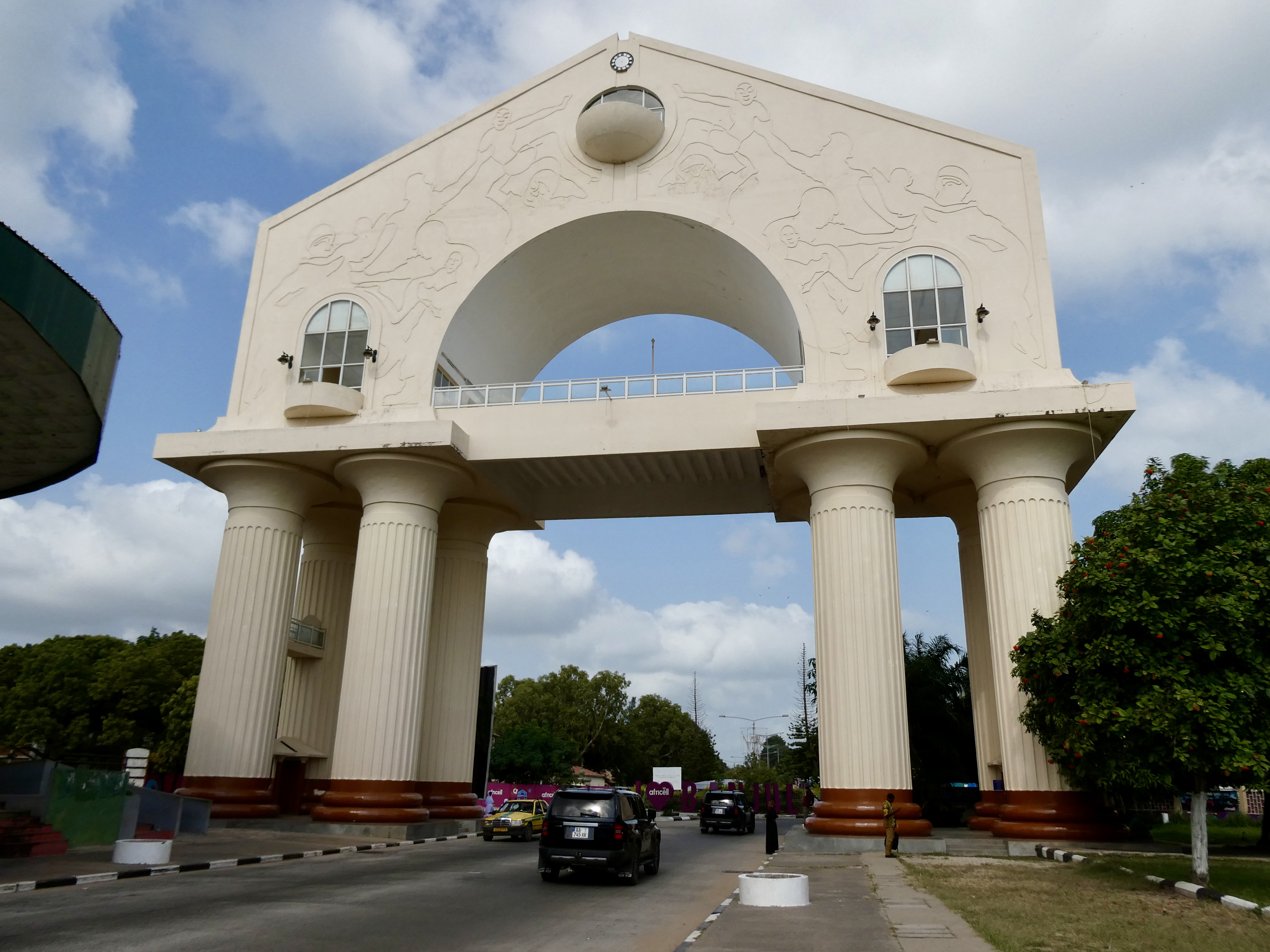 Anyway, after the walk through the museum (which I actually thoroughly enjoyed and I am not a huge museum fan), we moved on to Arch 22, which is an arch marking the entry into Banjul. The Arch was built in 1996 to commemorate the military coup that took place on July 22, 1994, when Yahya Jammeh and his army overthrew the democratically elected Gambian government of President Dawna Jawara.
