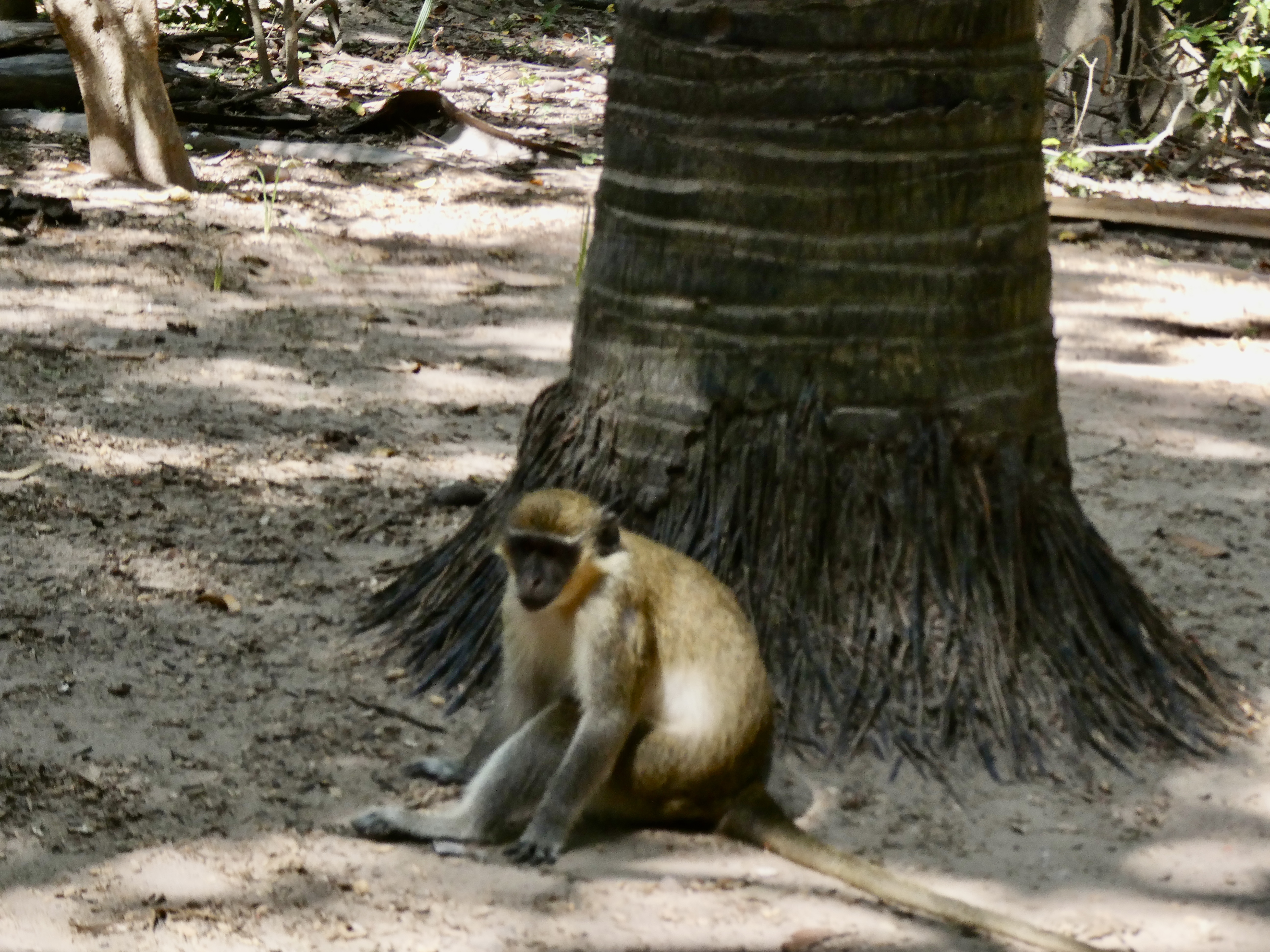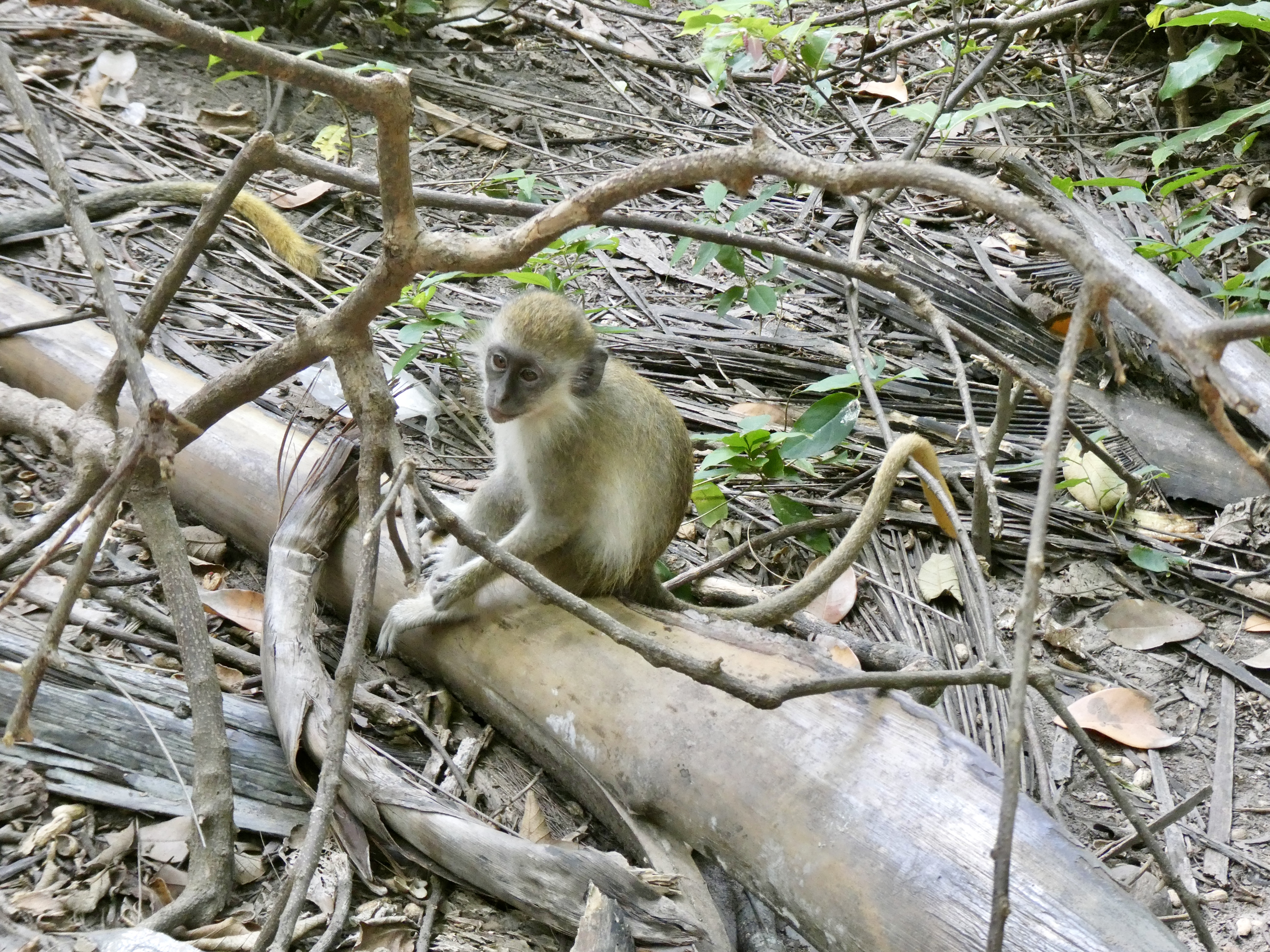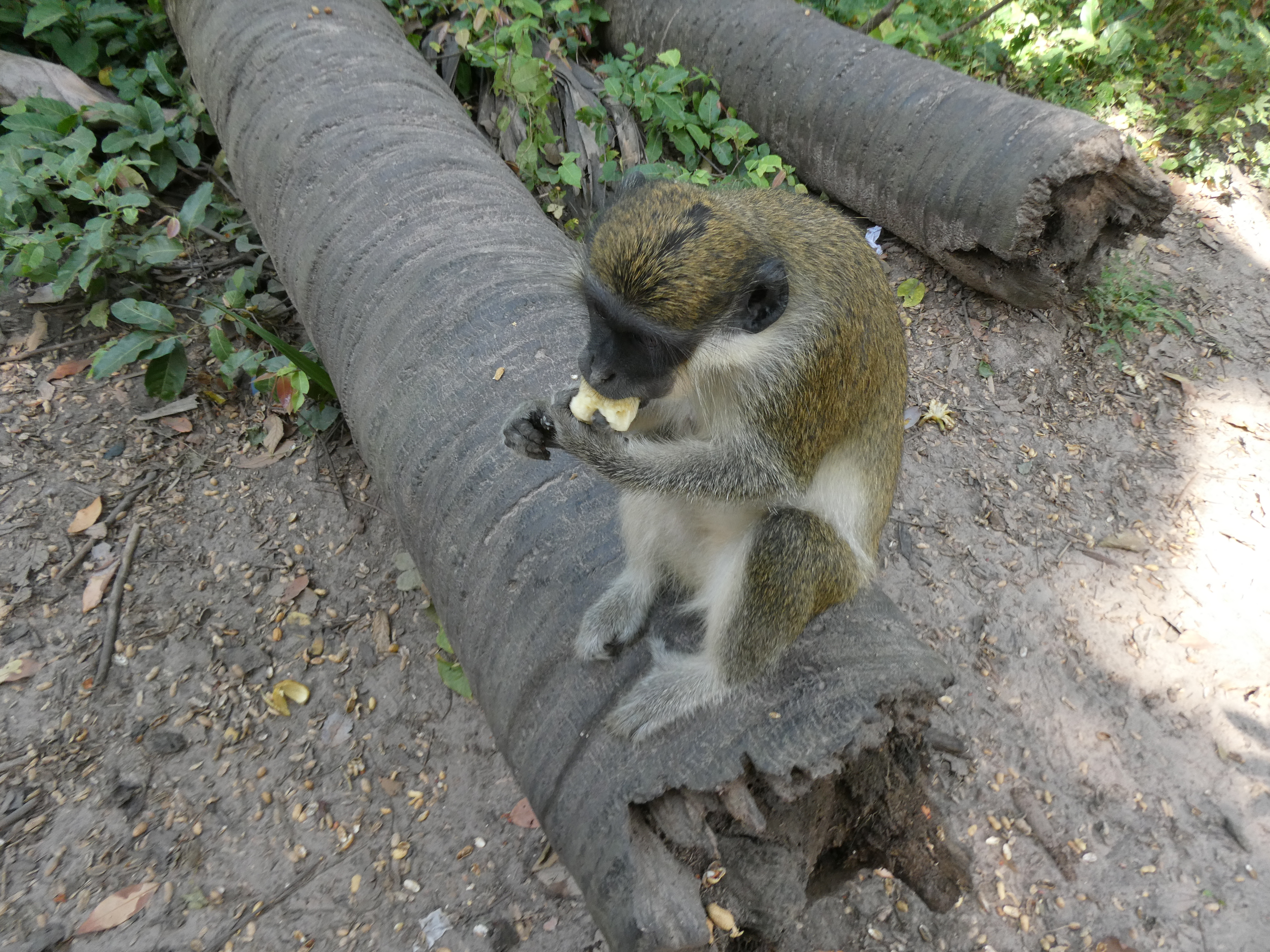 But on the flip side, we had the green monkeys who proved to be hungry, greedily little buggers who would eat you out of house and home if they could. As we walked along the path, the green monkeys followed us with their hands out and as soon as we pulled out a piece of banana and put it near one of them, the monkey would grab for it, peel it and eat it before we even had a chance to move on.