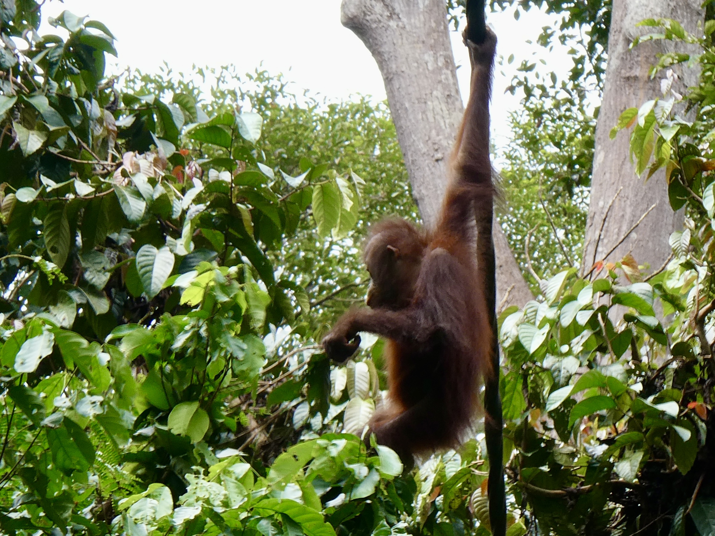 After about a half hour of watching the orangutans, we made our way out of the rainforest and as we walked we encountered two more wild orangutans who were just hanging out swinging through the trees. VERY cool.