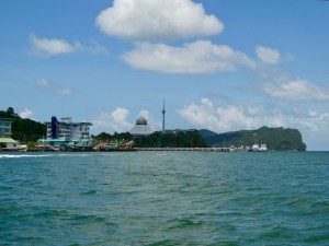 After the sun bear visit, we were loaded onto a bus and taken into Sandakan for lunch before hitting the jetty were we would spend two and half hours on the Kinabatangan River before reaching the Sukau Rainforest Lodge. Now as we were driving to lunch, Hayman said that I would be moving to a different group of folks for the boat tours. HUH? I had just spent the morning with a German couple, a British couple and two British ladies who were going to be touring as a group, and I was now being shifted to another group? What the heck? And when I found out who I would be with, I immediately vetoed that: a lady with three teenage children and four teenage friends. Nope. Not gonna happen. My guess is they wanted another chaperone for the kids and thought the single gal could help out. Not bloody likely.