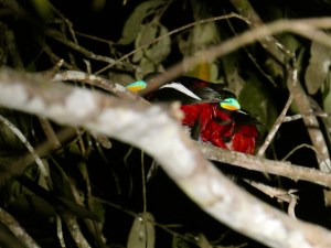 As we started back, we spotted, a small brown spotted snake wrapped around a tree branch as well as a number of small frogs and another pair of black and red broadbill.
