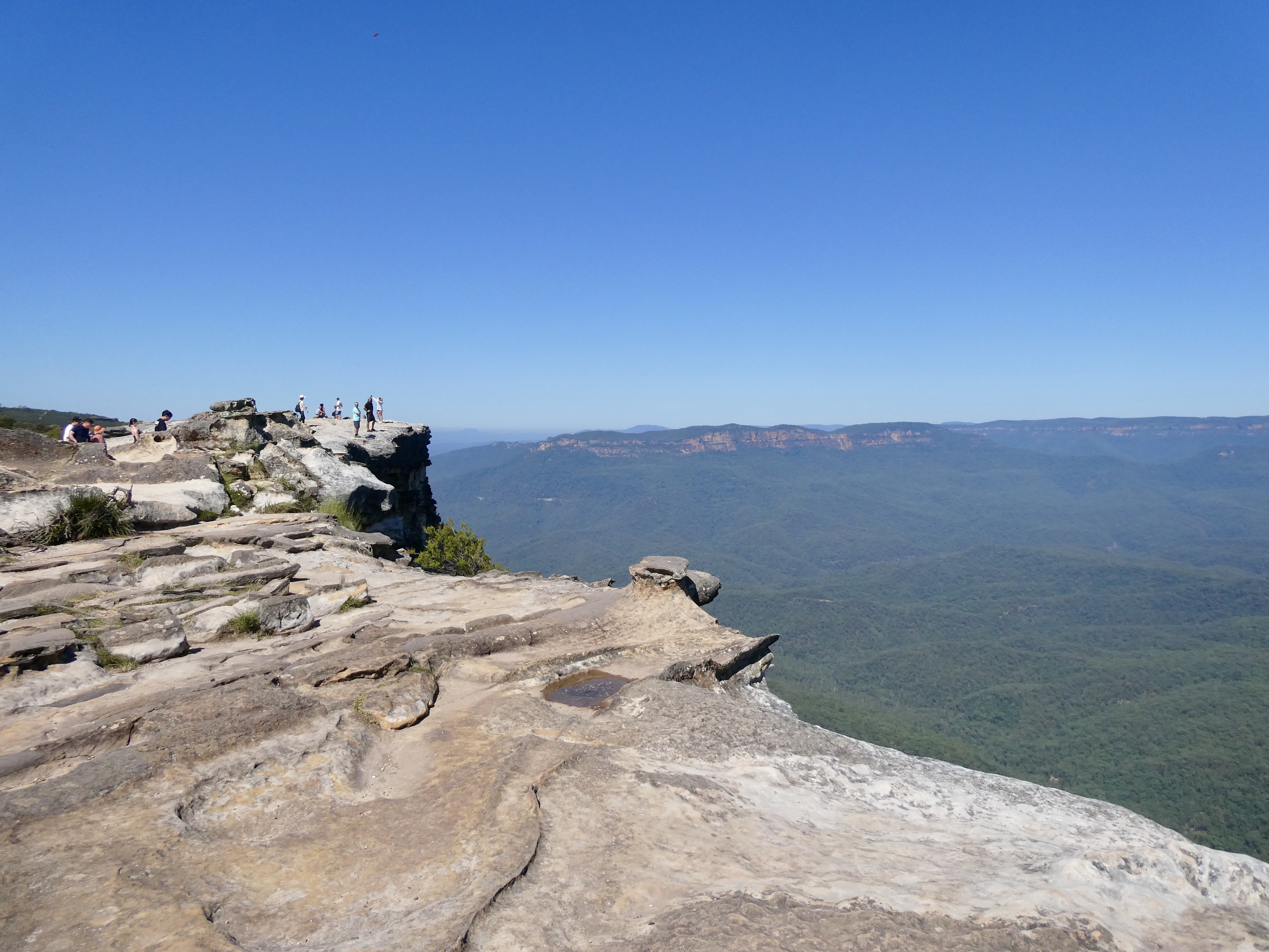 After the break, we headed further into the mountains climbing an additional 800 meters in altitude to our next stop at Lincoln’s Rock. Once we parked, we hiked a few hundred meters down a small hill and up and over Lincoln’s Rock. By now the cloud cover had lifted giving way to spectacular views across the Jamison Valley with Mt Solitary in the distance.