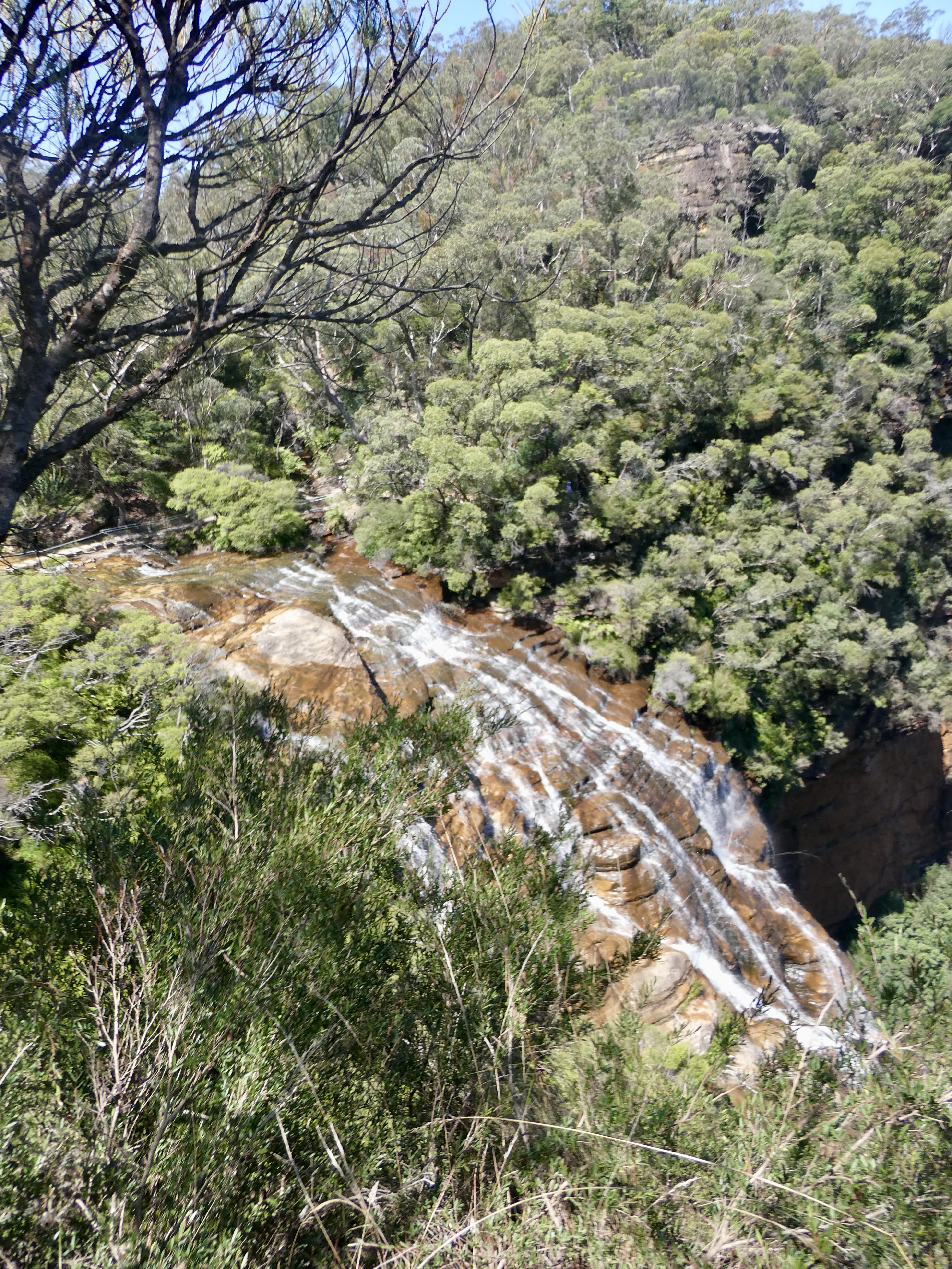 Anyway, it started off all well and good with a hike down from the car park to Jamison Lookout with our first initial view of the falls. The stone staircase at this point was manageable, although some of the space in between the stairs were a lot bigger than what I had been expecting so this made it a bit tough on the knees. (And as mentioned the spacing issue was due to the age of the trails).