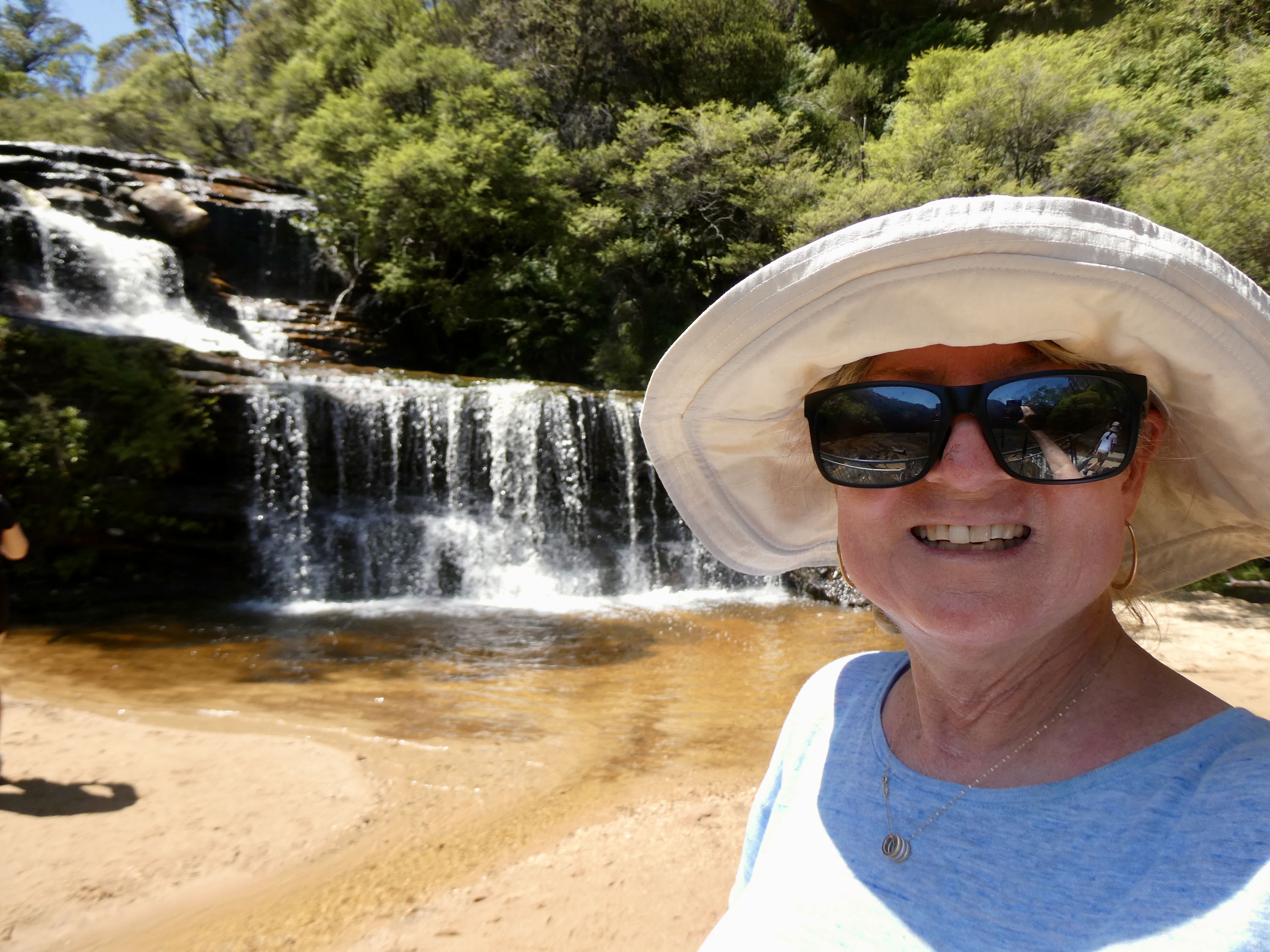 Once we hiked back up the hill, we were returned to the mini-bus for the short drive over to Wentworth Falls, a three tiered waterfall fed by the Jamison Creek near the town of Wentworth Falls. We were going to spend two hours hiking to the falls and back. Now I will just preface this by saying, I somehow thought that this hike was going to be a nice meandering hike through the Blue Mountains, with about a 15 minute tough hike down and back to the actual falls. Uh … think again. This “lovely” waterfall hike turned into a two hour hell hike.
