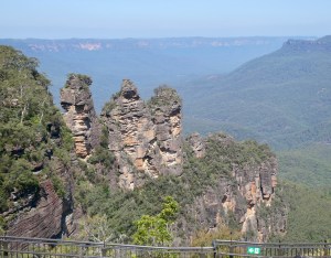 By 2:00, we were back in Rosie and powering further up the mountains to the town of Katoomba home of the iconic Three Sisters Rock Formations. Now the story of the Three Sisters is that three sisters allegedly fell in love with three brothers from a competing Aboriginal tribe. A war broke out over the brothers desire to marry the three sisters. In order to protect the three sisters, a witch doctor turned them to stone, but was killed during the war so the Three Sisters remains frozen in stone.