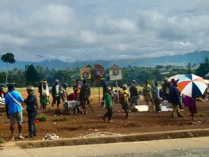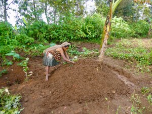 We then took a walk through a garden filled with vines that are apparently edible and used in Huli cooking. Nearby we watched a Huli woman plant cuttings from vines, which in about four months will be edible and used by the village for food.