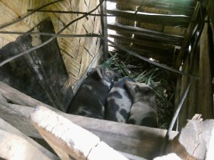 In the village, Steven showed me the outside of a traditional home with a tiny (and I mean tiny) pen holding three rather large pigs. Apparently pigs are a traditional source of currency in the Huli culture. In fact, when a man wants to marry a woman, he must pay the woman’s family in pigs. Seriously.