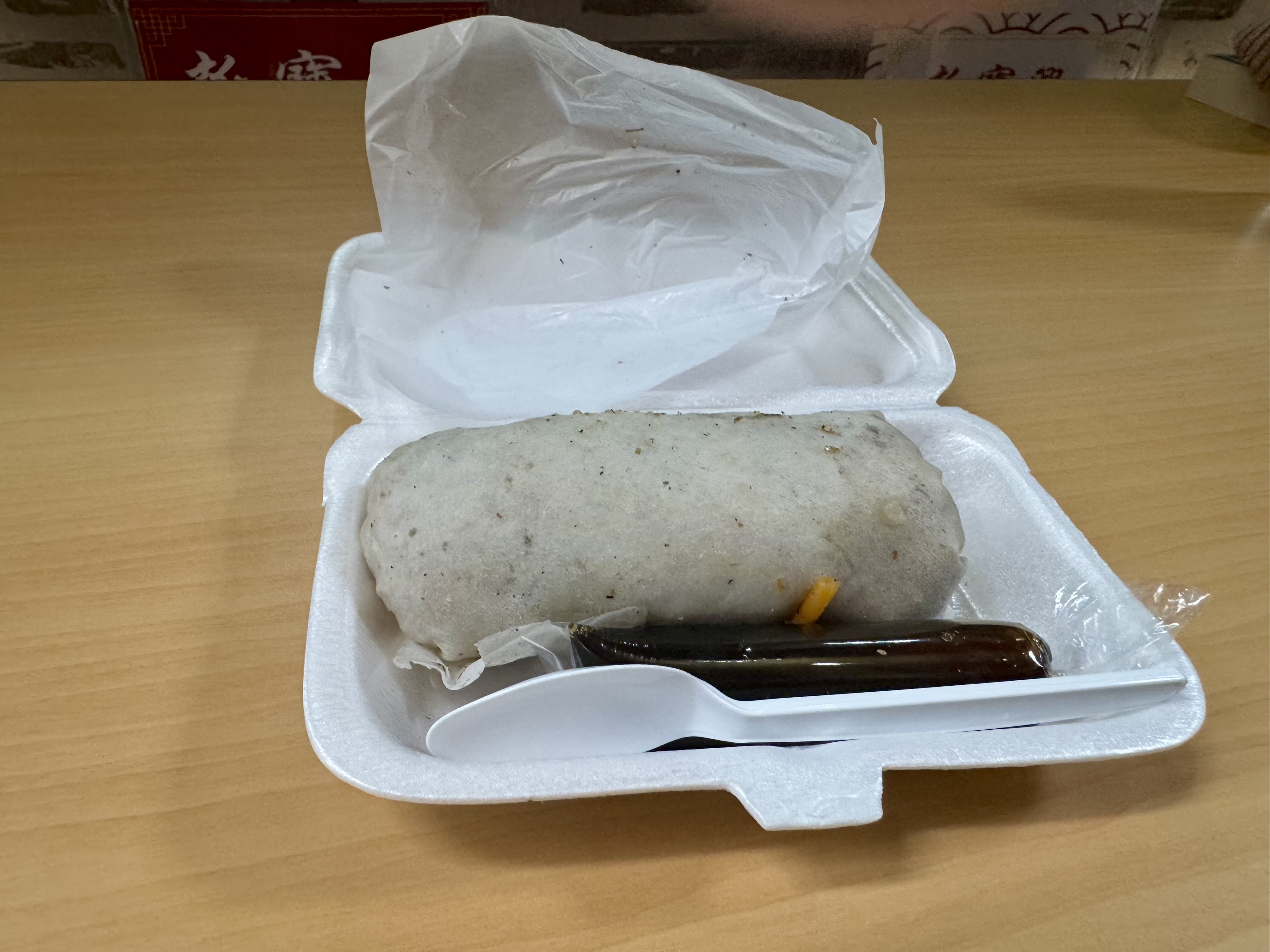 When the soup was served, I immediately knew this was going to be near the bottom of the foods I tried today. The broth was actually quite delicious, but the noodles were made of wheat flour and had a distinctive funky taste. I wouldn’t call it ick, but definitely nothing better than a 5 out of 10 since the taste of the noodles really hindered my ability to eat much of the soup. (I will say, however, that the oolong tea was spectacular.)