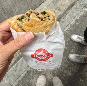 For our final stop of the day, we Eng Bee Tin, a Chinese chain cake and cookie shop where Nel bought me an ube flavoured cake to take with me. Now I did not have the heart to tell Nel I was not fond of ube (purple yam) so I accepted the lovely gift. And ironically right outside the shop we spotted a purple fire engine, which Nel said had been painted that colour to honour the Eng Bee Tin shop in the neighborhood and its popular ube cake. So … I guess I remain in the minority in my dislike of ube.