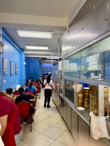 Nel, my tour guide for my Filipino food tour on Sunday, was my tour guide today and I was thrilled to see her again. Anyway, we started out the food tour at the Binondo Church. From here, we walked across the street and down an alley filled with Chinese shops and produce stands. We stopped at Puo Hing Lumpia to try, what else, the lumpia. The lumpia was sort of like a tortilla wrap filled with cabbage, carrots, tofu, minced meat and drizzled with brown sugar and seaweed (yes you read that right). It was in a word, awful. I told Nel I gave it a 5 out of 10, but I was being kind. It was more like a 1 out of 10. Yuck. At this point, I was hoping the food would get better and fortunately it did.