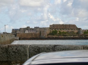 Anyway, we left Pier 17 about 1:30 and started out driving up the narrow road through St. Peter Port past the former home of Victor Hugo (the man who penned Les Miserable among other books), and past Fort George, a former military base and numerous cottage style homes that are so common on Guernsey. Now the roads on Guernsey are all narrow and back home they would be classified as one way roads, but somehow the locals make it work. (Smaller cars and the willingness to pull over to let a car pass is the key.)