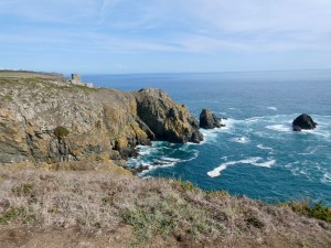 Along the way, we also spotted the Royal Guernsey goats (King Charles apparently visited the goats last year and they are now the “royal” goats) and yet another of the many, many unique mails boxes in Guernsey, before reaching the highest point on the west side of Guernsey, Batterie Generaloberst Dollman. This location was one of the German’s most important lookout points and includes a number of bunkers, gun batteries and tunnels. The views were incredible and the presence of a nearby lighthouse (that was the last occupied lighthouse in Britain) made it readily understandable why the Germans put such importance on this location.