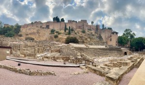 Now I was thrilled to find that no one was around so I was able to take some lovely panorama pictures of the Roman Theater and the Alcazaba with zero people in the pics. And nearby there was a glass pyramid in which you could peer down to see ruins of Roman basins that were part of a fish factory dating to the 4th century AD. Love it!