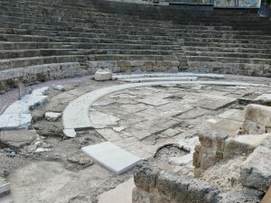 So once we made our way through the tiny, tiny museum, we walked down some stairs to the front of the Roman Theater. Now the Theater dates to the 1st century BC and includes three tiered seating area with three gateways to access your seats, a stage and am area for the orchestra. The sign at the site indicated that the Theater was likely used for theatrical events like comedy and mime, as well as political and religious events. I was in heaven and could have sat in the Theater all day. I do love my Roman ruins.
