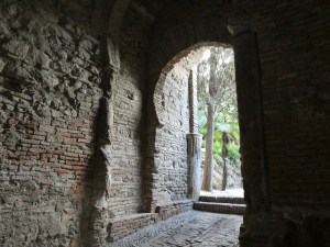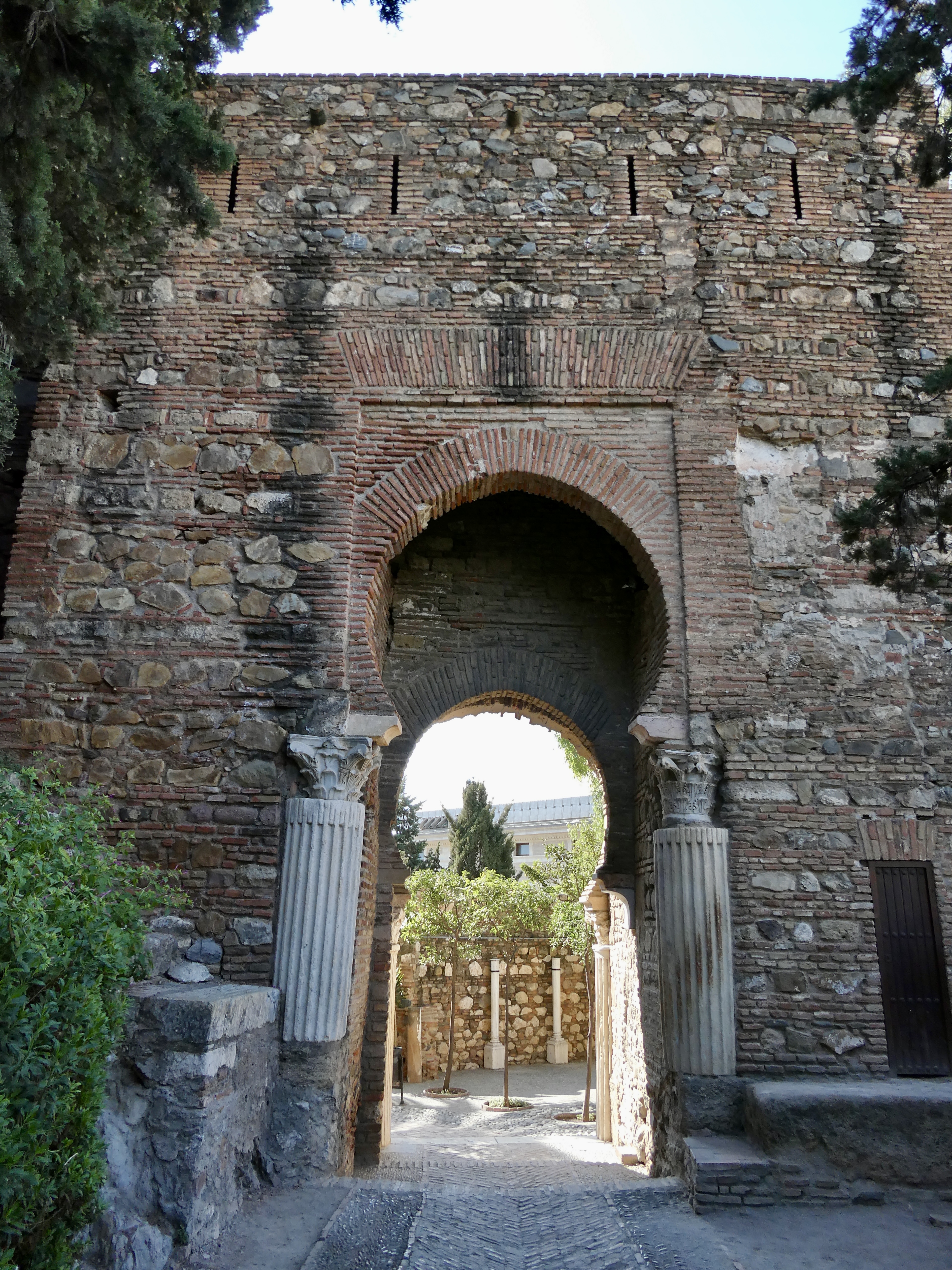 After passing through the curved entryway, we walked towards and passed through the Puerta de la Bóveda aka Gate of the Vault, which forms yet another L or bend in the passageway. We then walked straight through the Puerta de las Columnas (‘Gate of the Columns’), so named because it was fortified with Roman marble columns, which opened onto a fortified courtyard and wall.