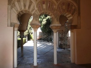 Now the Roman Theater must have still be visible at the time of construction because the Moors used parts of the Theater in building the Alcazaba, including columns that were used to support the arches in the fortress.
