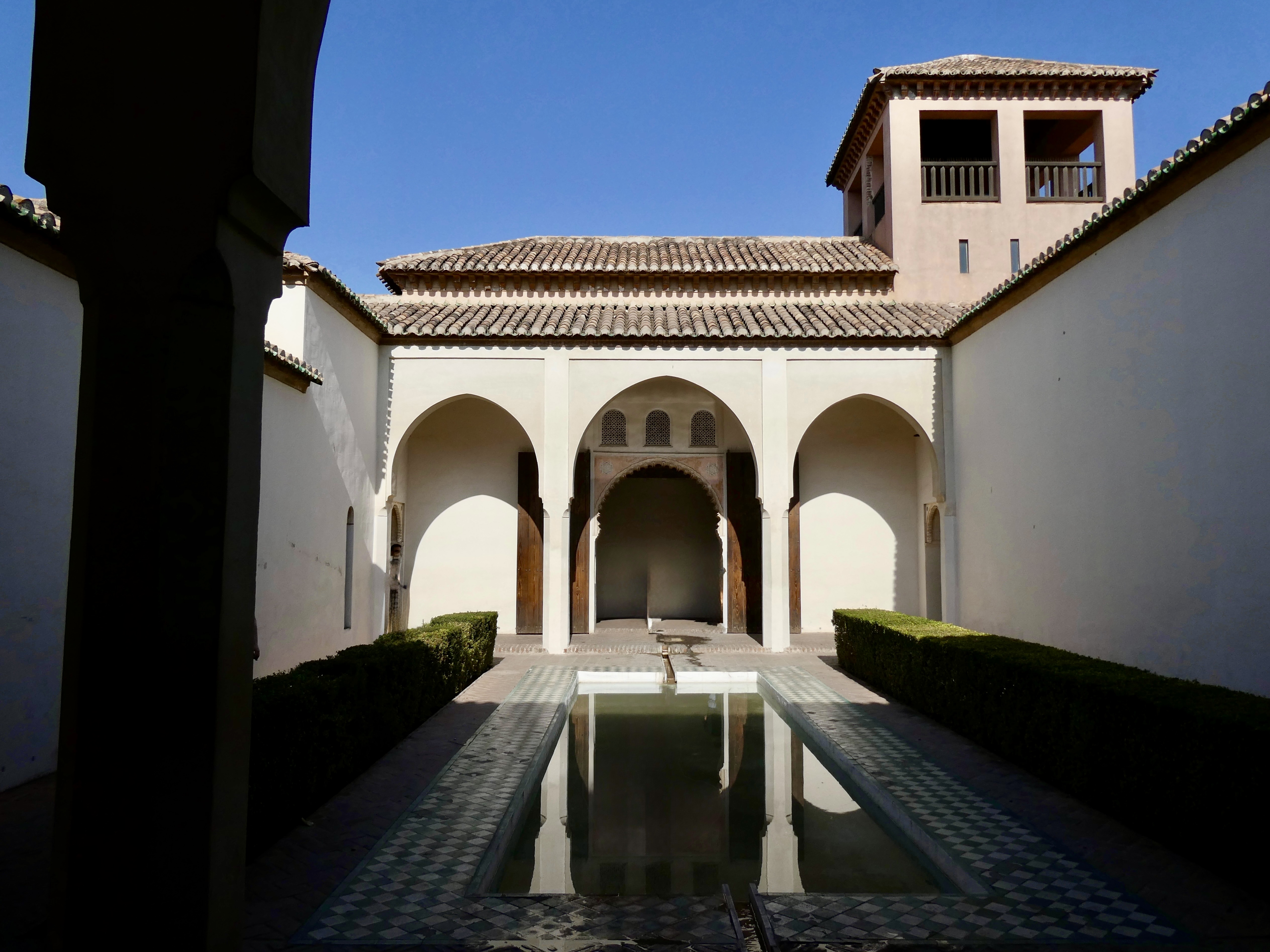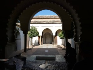 We entered a couple different rooms, including one that overlooked the harbour before moving on to the second palace, the Nasrid palace. Now this palace featured a handful of rooms and porticos arranged around two rectangular courtyards. The first courtyard was named the Patio de los Naranjos and had two original pools, with tiled décor. The second was name Patio de la Alberca and had one long central pool with original tile paving.