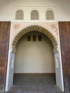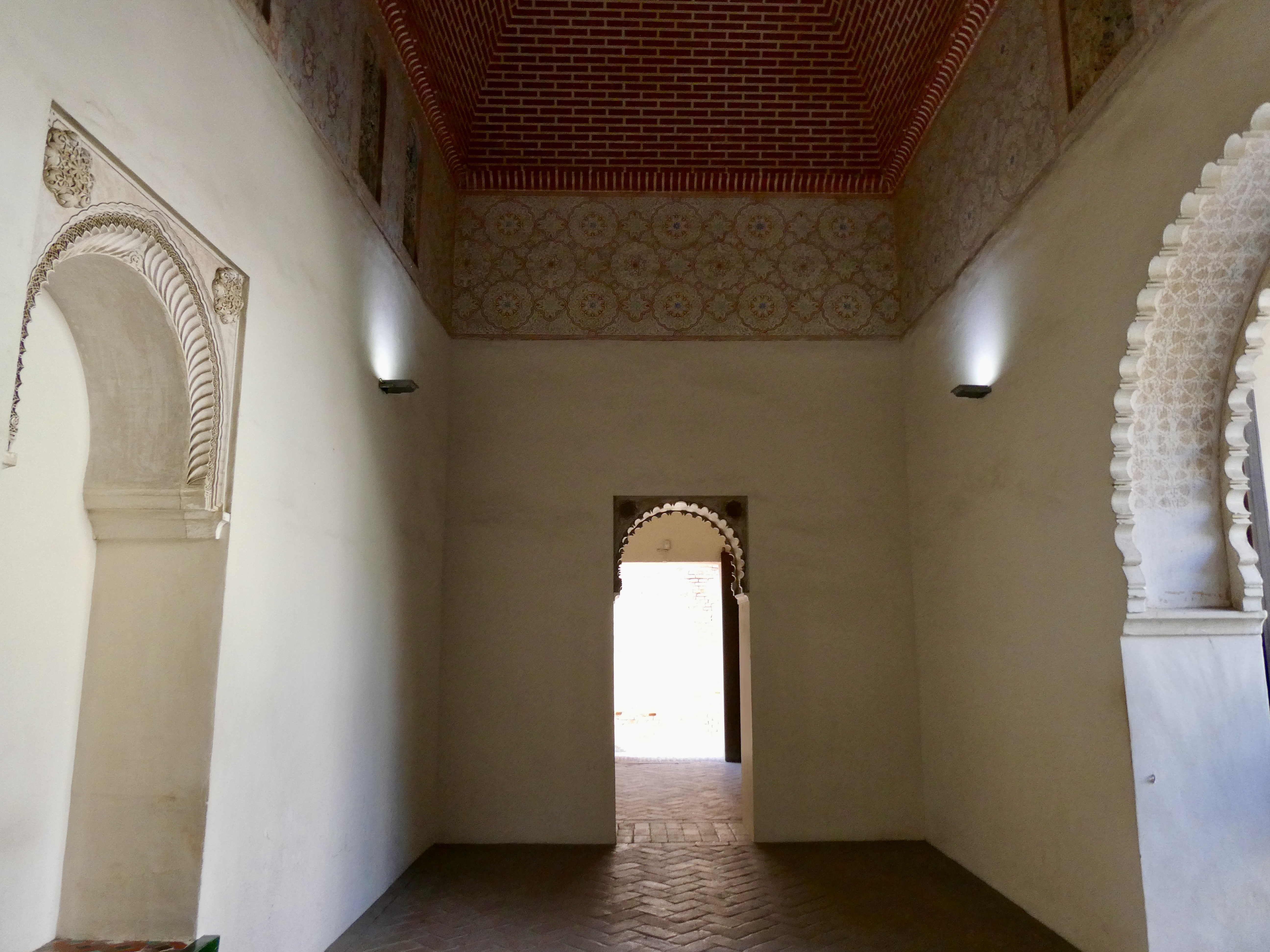 Now the room leading to the Patio de la Aberca courtyard was rather austere, but did have a lovely titled ceilings and a scallop shaped doorway at either end of the courtyard.