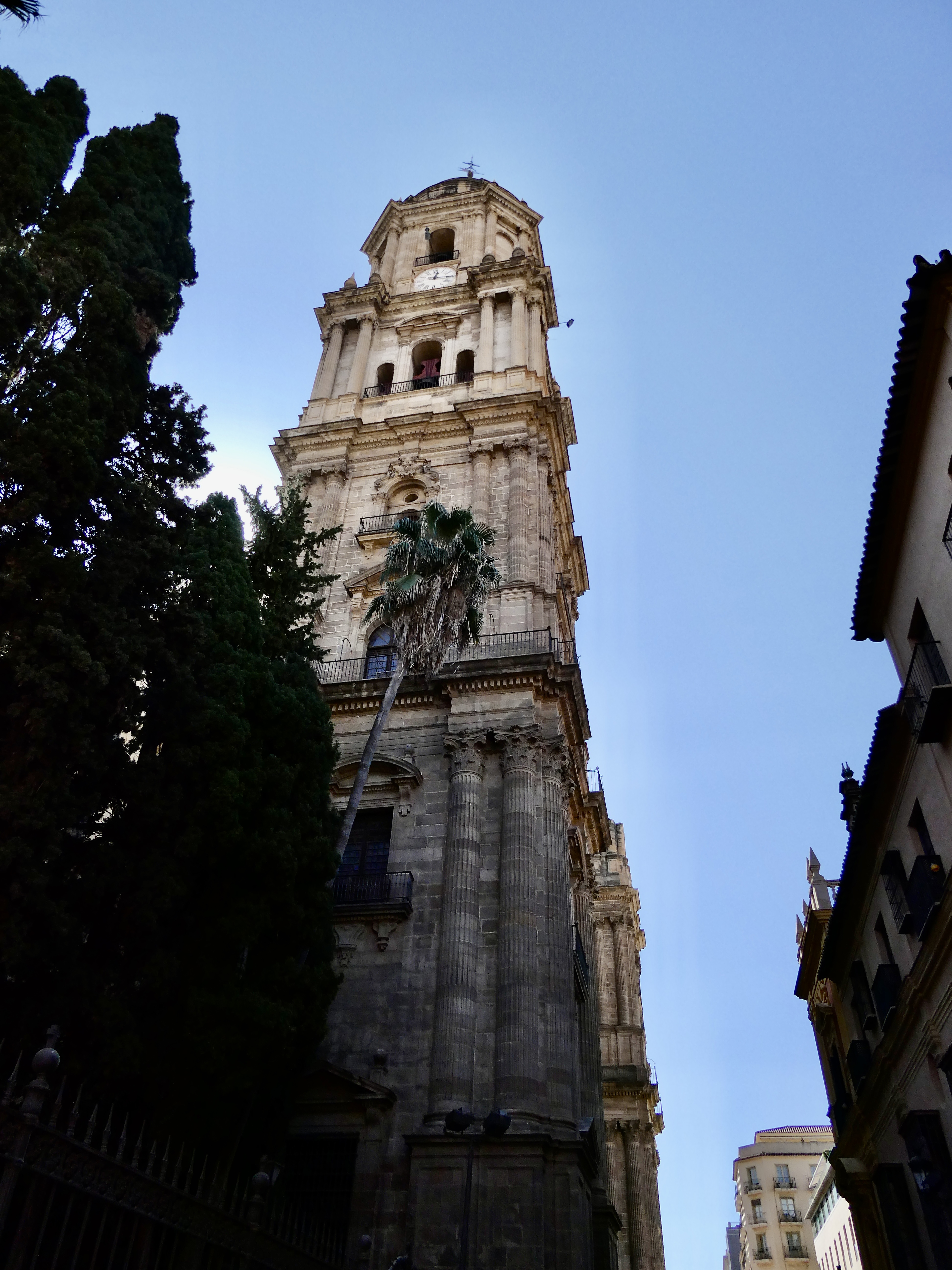 So at this point, we were done with the tour of the Alcazaba. Natalia gave us about 15 minutes on our own before we had to meet her back at the entrance. Once we gathered back with Natalia at noon, we took a walk through the old quarter to the Bishop’s Square which is home to not only to the Bishop’s Palace, a baroque 18th century building that once housed the Bishop and now serves as a Malaga Cultural Center, but also home to the Santa Iglesia Catedral Basílica de la Encarnación, (Malaga Cathedral).