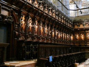Now the weird thing I noticed upon entering the building is that the interior was more Renaissance style and not at all like the façade. And the first thing you see on entering the Cathedral is the enormous Choir just off to the right with two huge organs on either side of the room and three levels of mahagony carvings dating to the 17th century. And to the left, was the Main Chapel, that was slightly obscured by a partial wall.