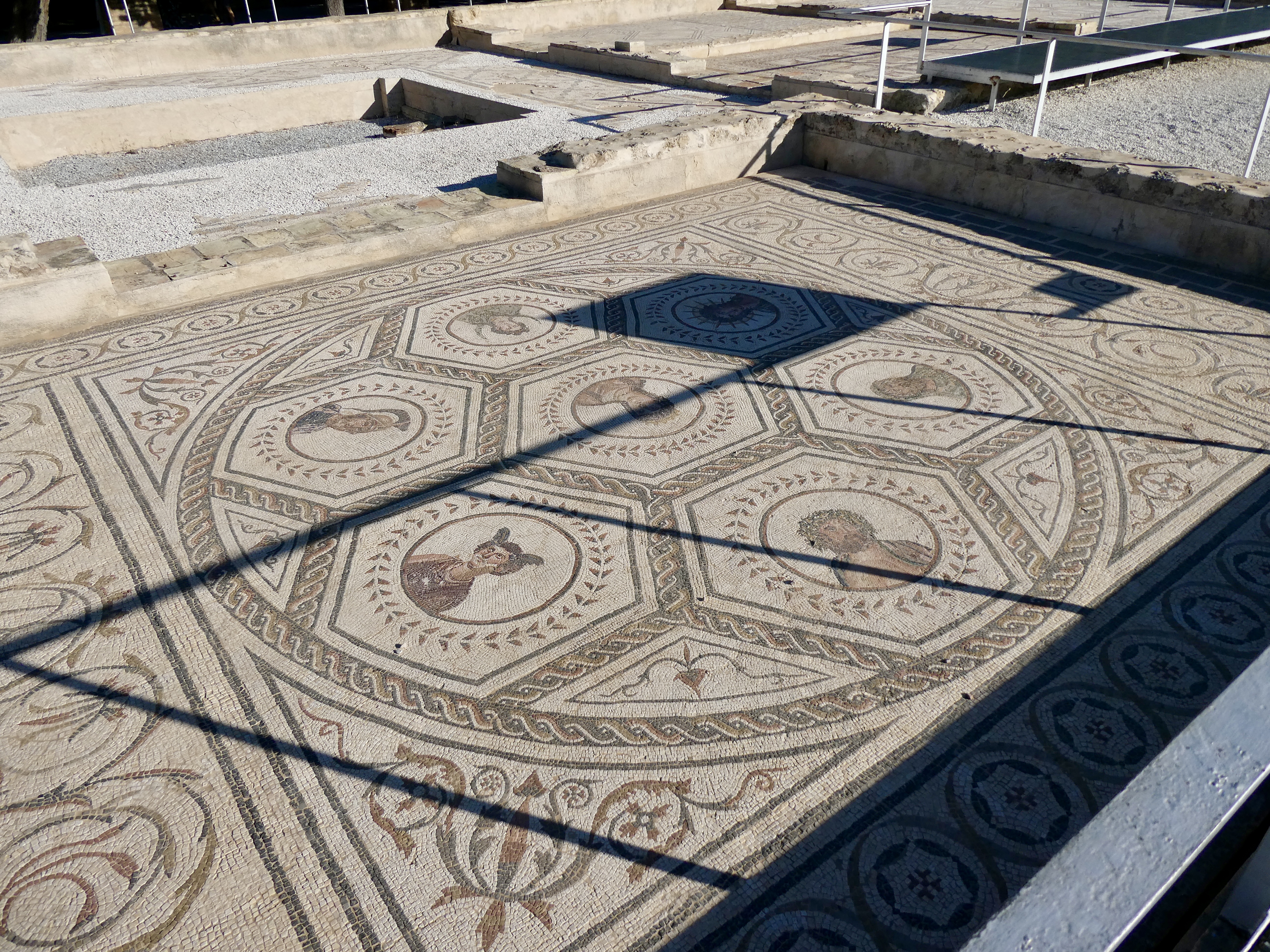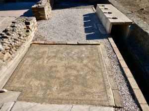 From here, we doubled back to check out some more Roman houses. So after passing the ruins of the bakery, we reached the House of Birds, one of the largest homes at the site, which featured a brilliant mosaic with birds from the area at the time.