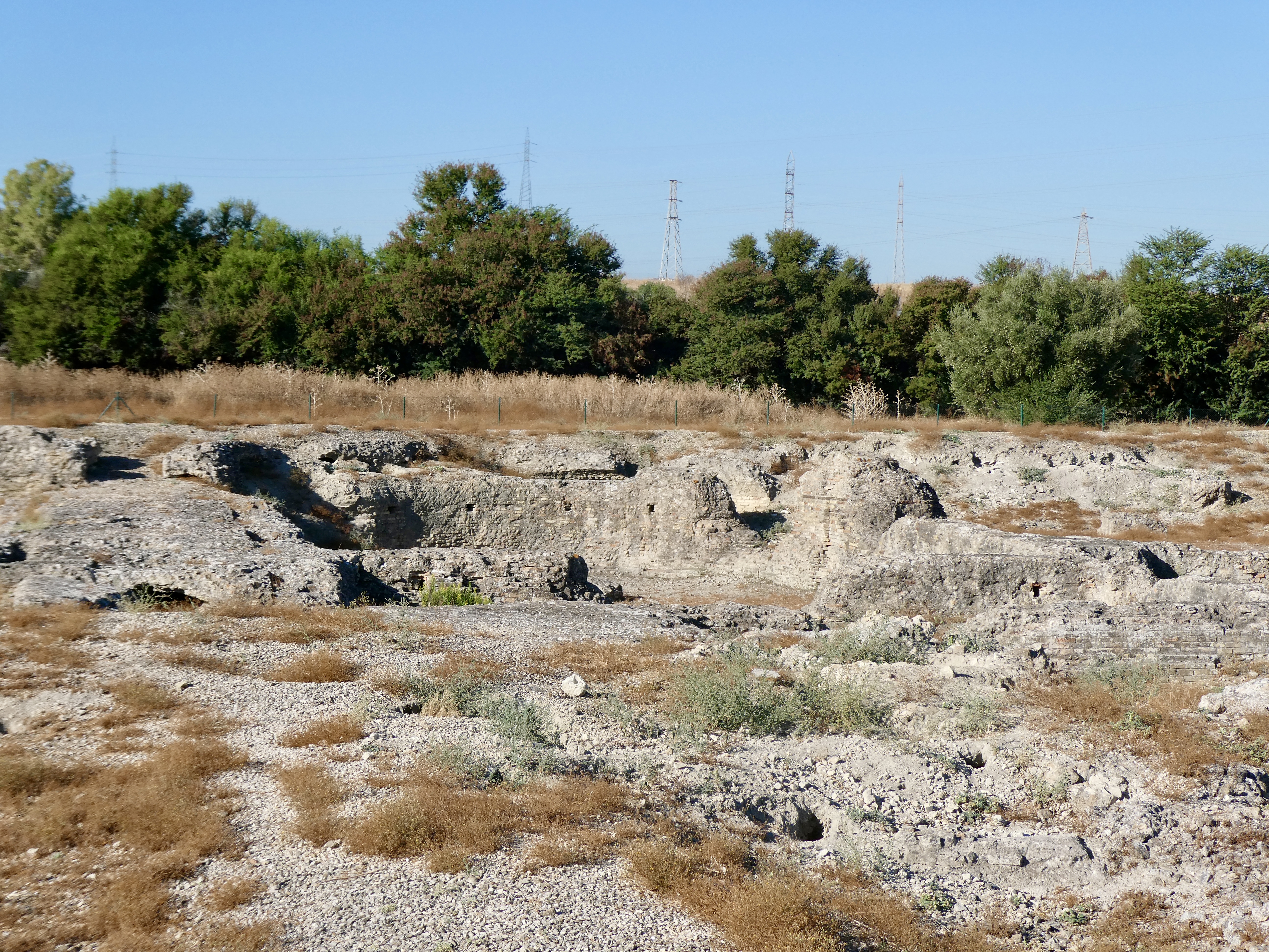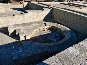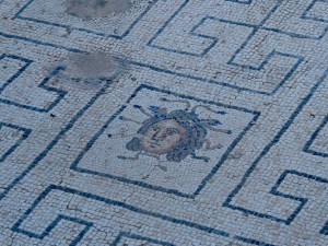 We then passed the House of Hylas with another lovely mosaic before stopping at the House of Neptune, which has only been partially excavated, but featured a thermal area including a calderium (hot area) evidenced by brick pillars and a frigidarium with a nearby mosaic.