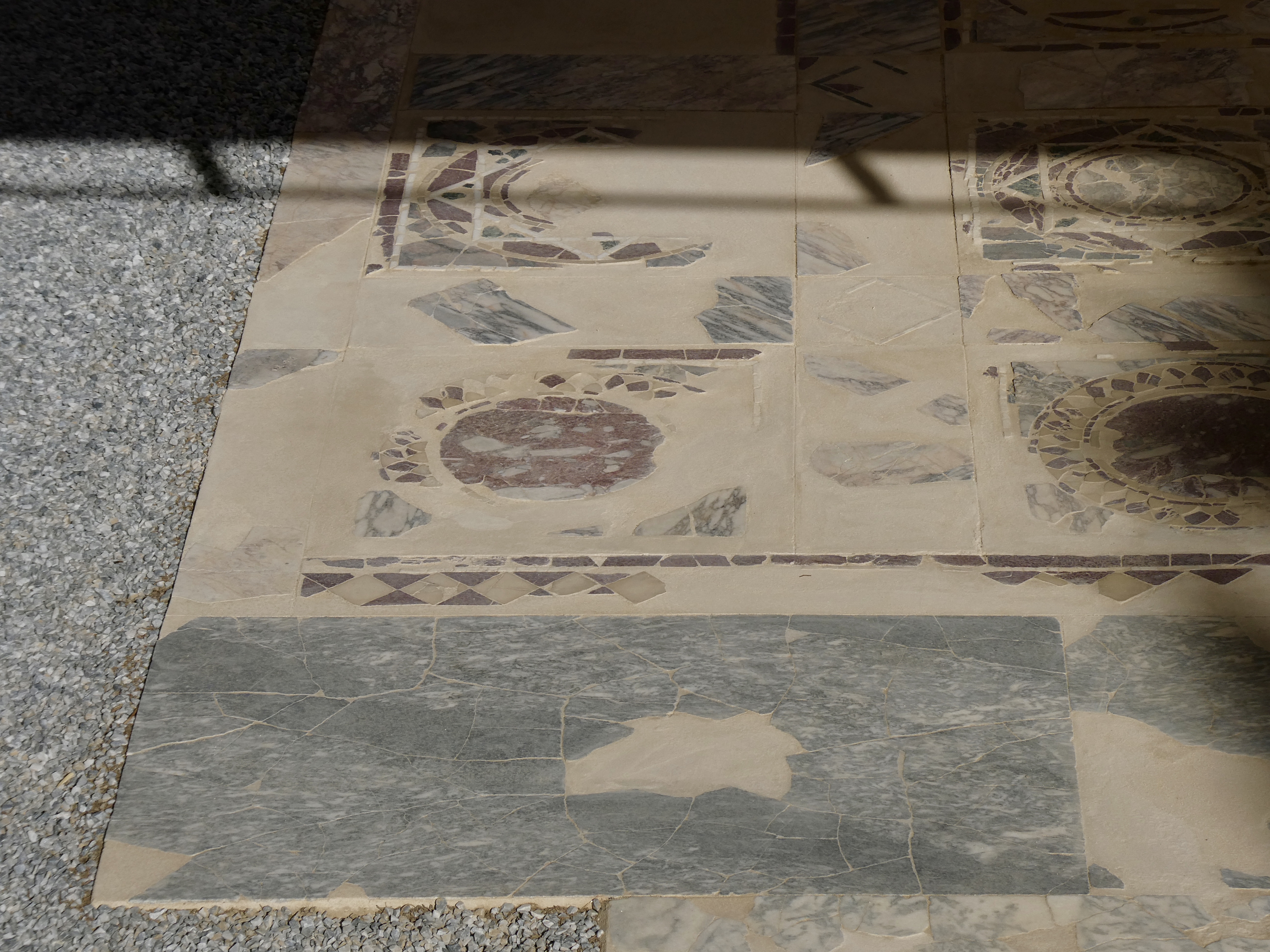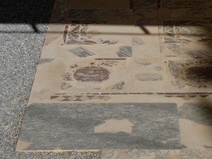 We then passed the first of a series of houses with intricate mosaics and marble columns. The first up was the Casa del Planetario, a home with a mosaic dedicated to the planetary gods. This mosaic was in remarkable condition, although I wish they would place a cover over it or something to protect it from the elements.