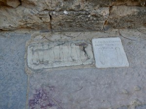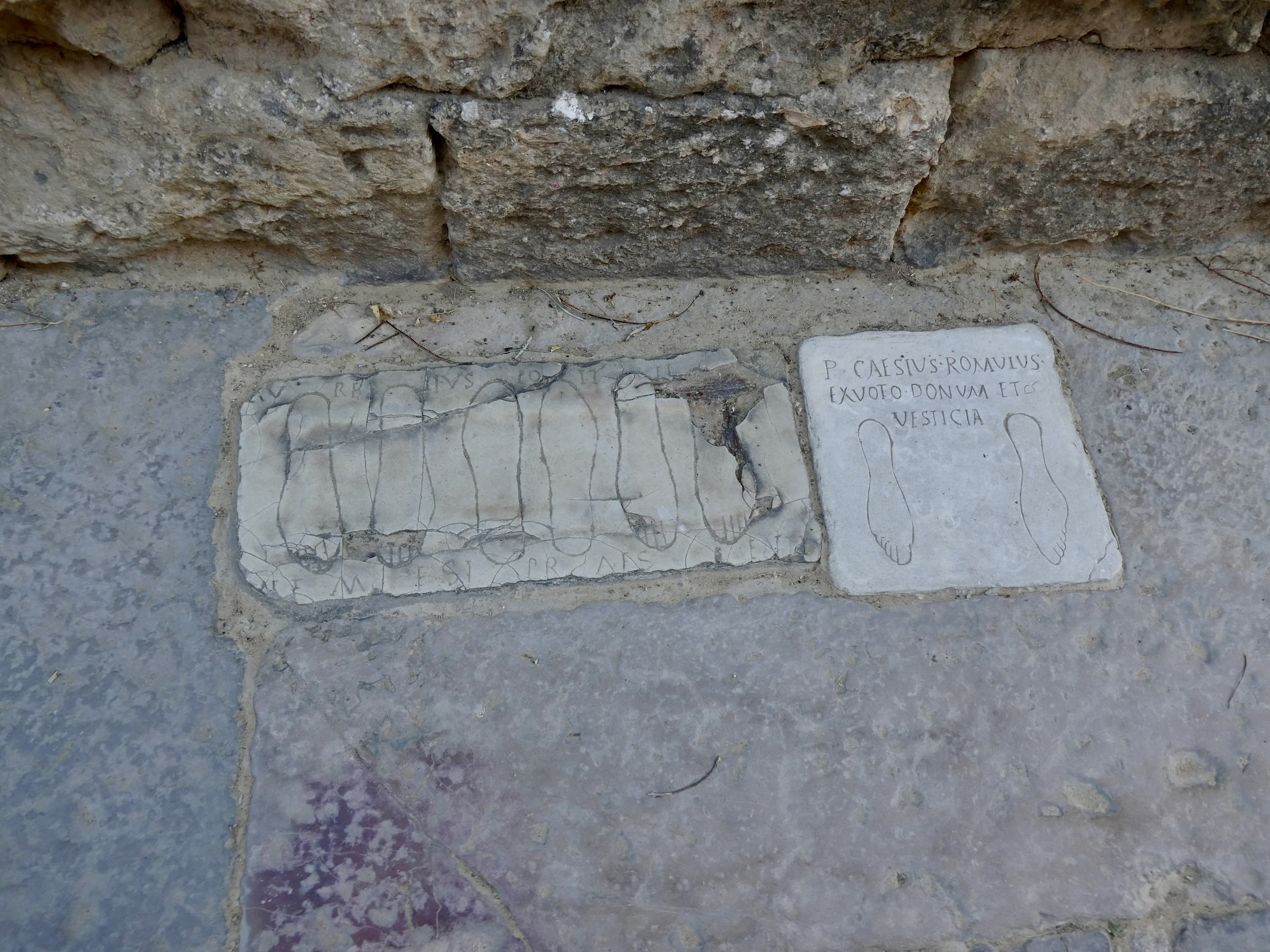 We wandered through the entrance and past a temple room dedicated to the cult goddess Nemesis and even saw a footprint plaque outside the temple dedicated to Nemesis.