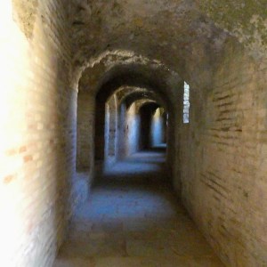 From here, we went through a doorway and under the Amphitheatre where I was able to see the numerous entrances into the buildings and stairwells leading up to the seating area. There was even a remarkably well preserved mosaic on one of the floors.