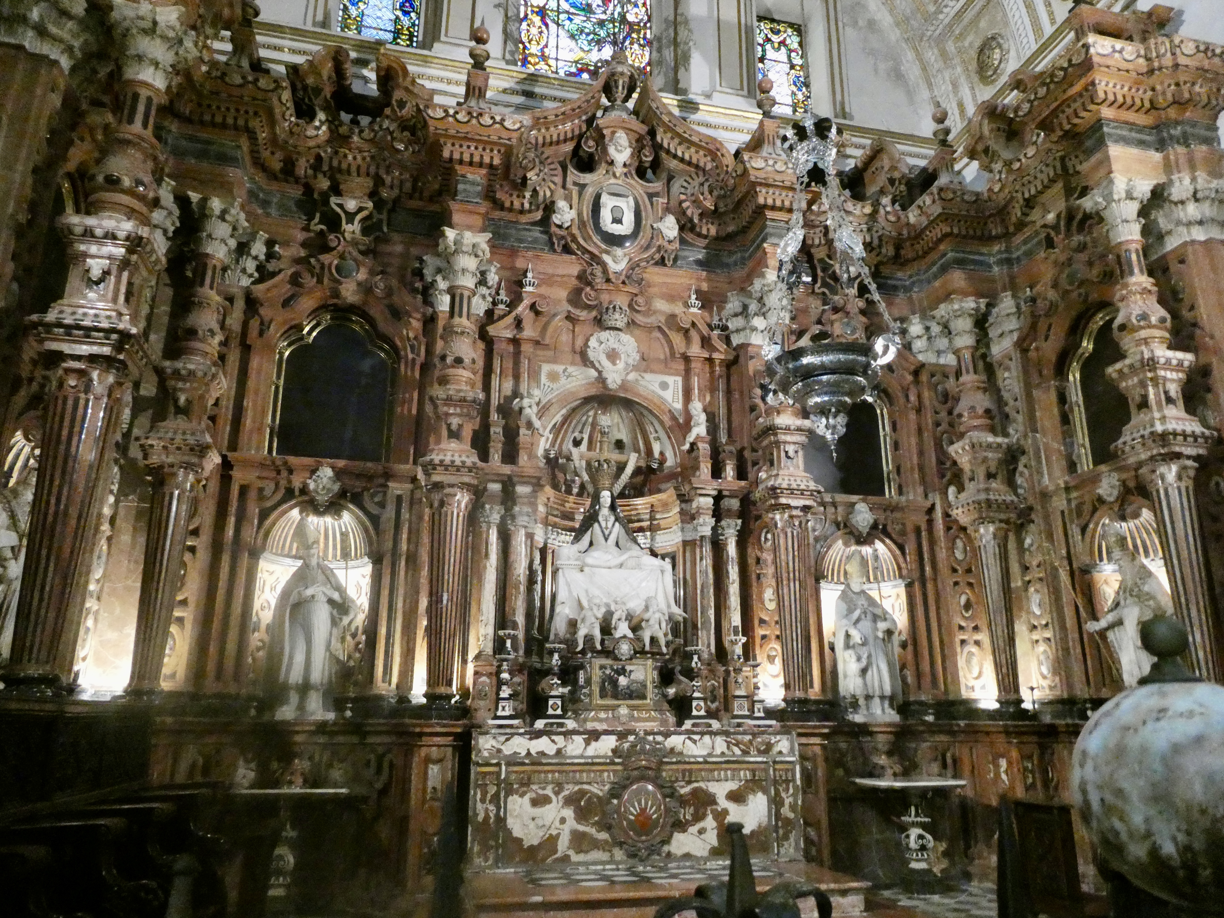 The last part of the Cathedral was the Ambulatory, a curved area leading to the back of the Main Alter. And again, more chapels, but here there were one particularly interesting chapel and one fascinating cabinet. First, I found the Chapel of the Virgin of Antigua particularly interesting not just because the altarpiece was in baroque design (which is always more interesting than Renaissance design in my opinion), but the Virgin Mary was wearing a blue cloak and the statute was gifted to the Cathedral by Queen Isabella. Second, baby Jesus was holding a pomegranate and the Spanish word for Pomegranate is Granada.