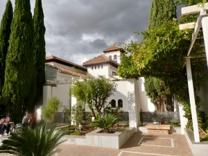 We eventually reached the two-thirds point of the climb and it was here that we began to see many “Carmen” houses, which date to the 11th century. Carmen houses are traditional, walled homes with hidden interior gardens and courtyards with water features, all of which was traditional in Muslim homes. Apparently, many of these homes have small orchards in the gardens featuring a variety of fruit trees. The homes are meant to be secluded with plain, whitewashed walls hiding the secret courtyards inside.