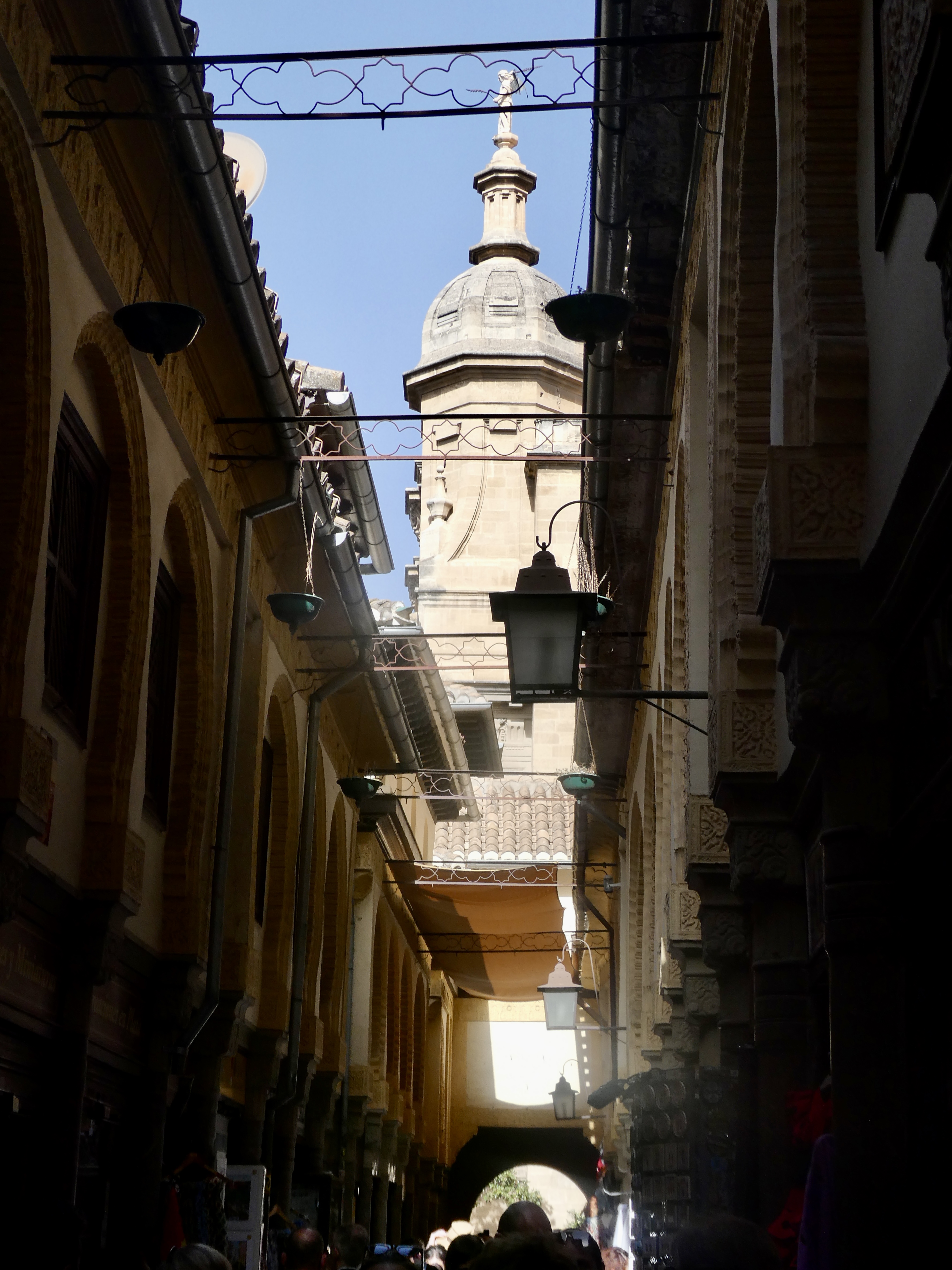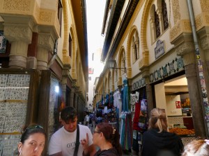 From here, we crossed the square and entered a narrow alley where we began our walk through the Alcaicería or old Muslim souk. The Alcaicería became an important commercial area from the 11th century where merchants sold their wares. Over the centuries, the souk became an important silk market as well as a location for the sale of high end products. Today, the market is filled with shops and stalls selling goods imported from Morocco, including lamps, clothing and food products.