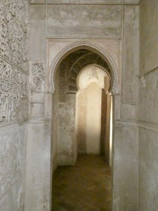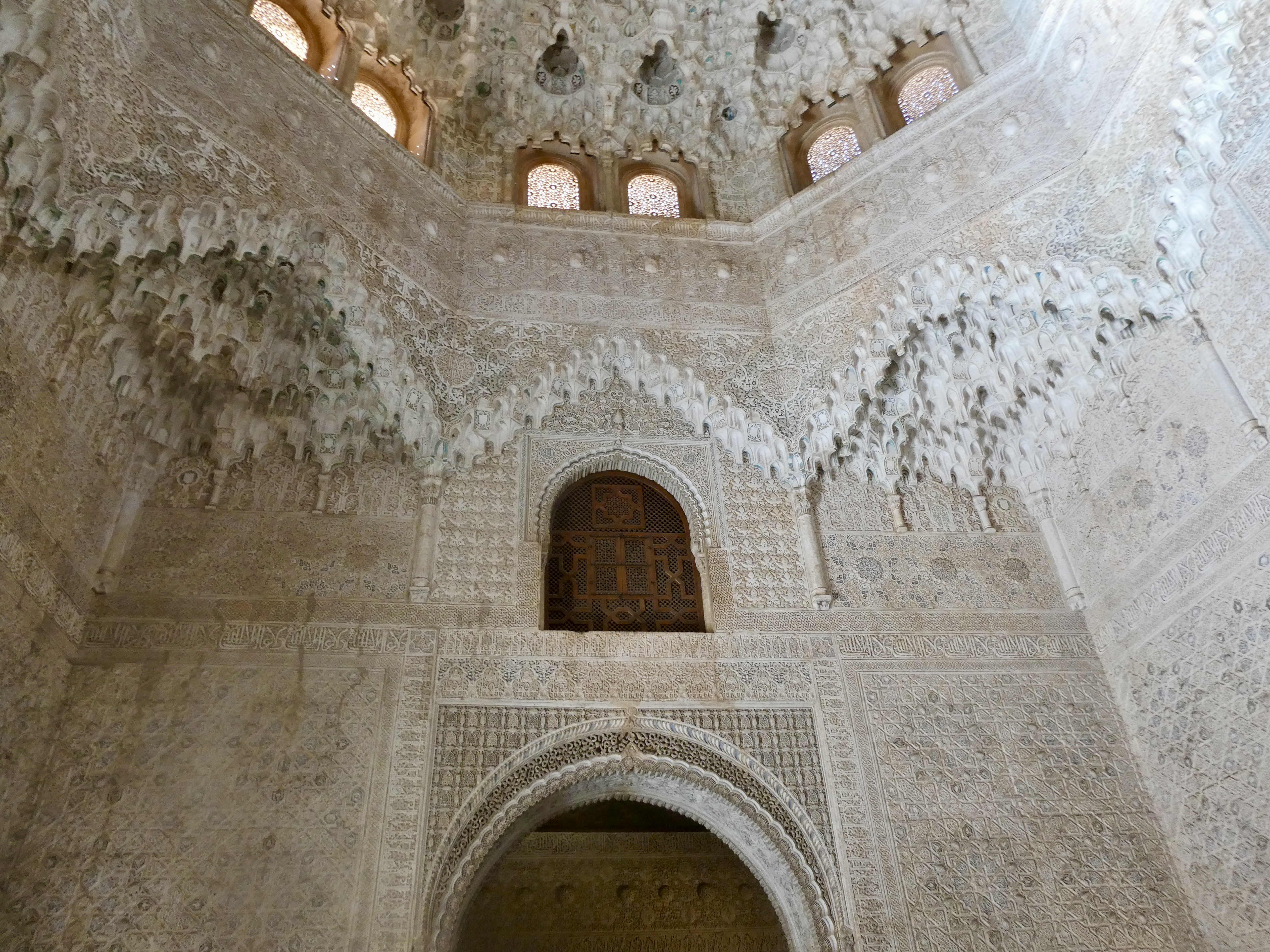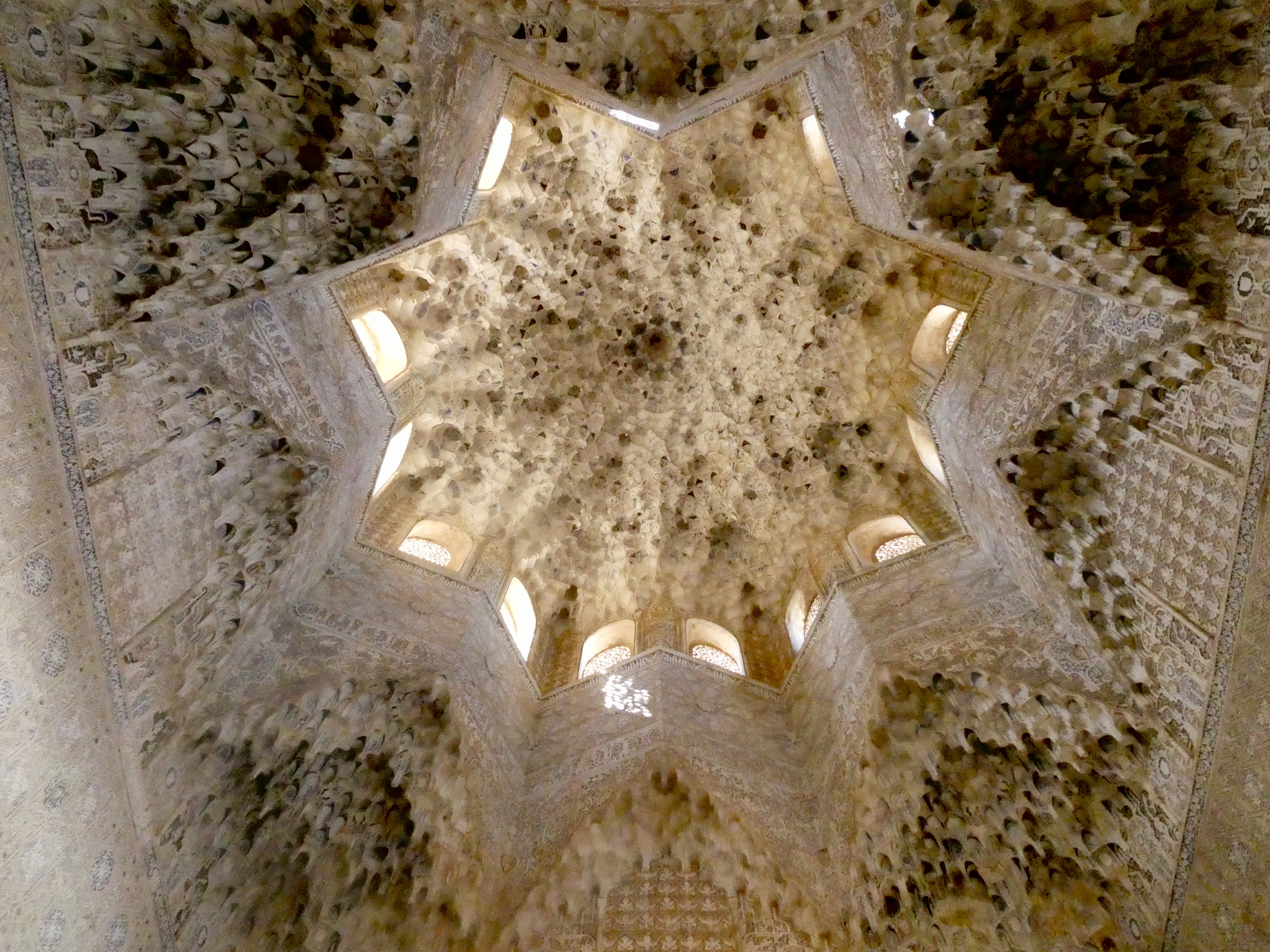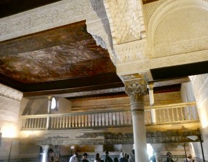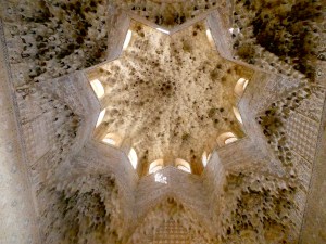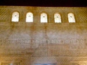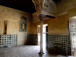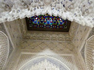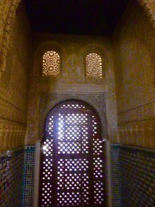 On one side of the courtyard was the Sala de Abencerrajes, a room with an absolutely magnificent muqarnes dome illuminated by sixteen windows and constructed in the shape of an eight point star. Above this chamber lies the Harem, an area with restricted access even today, although the door to the harmem was visible on the main floor. It is thought that this room was used by the Sultan in his “interactions” with the harem.