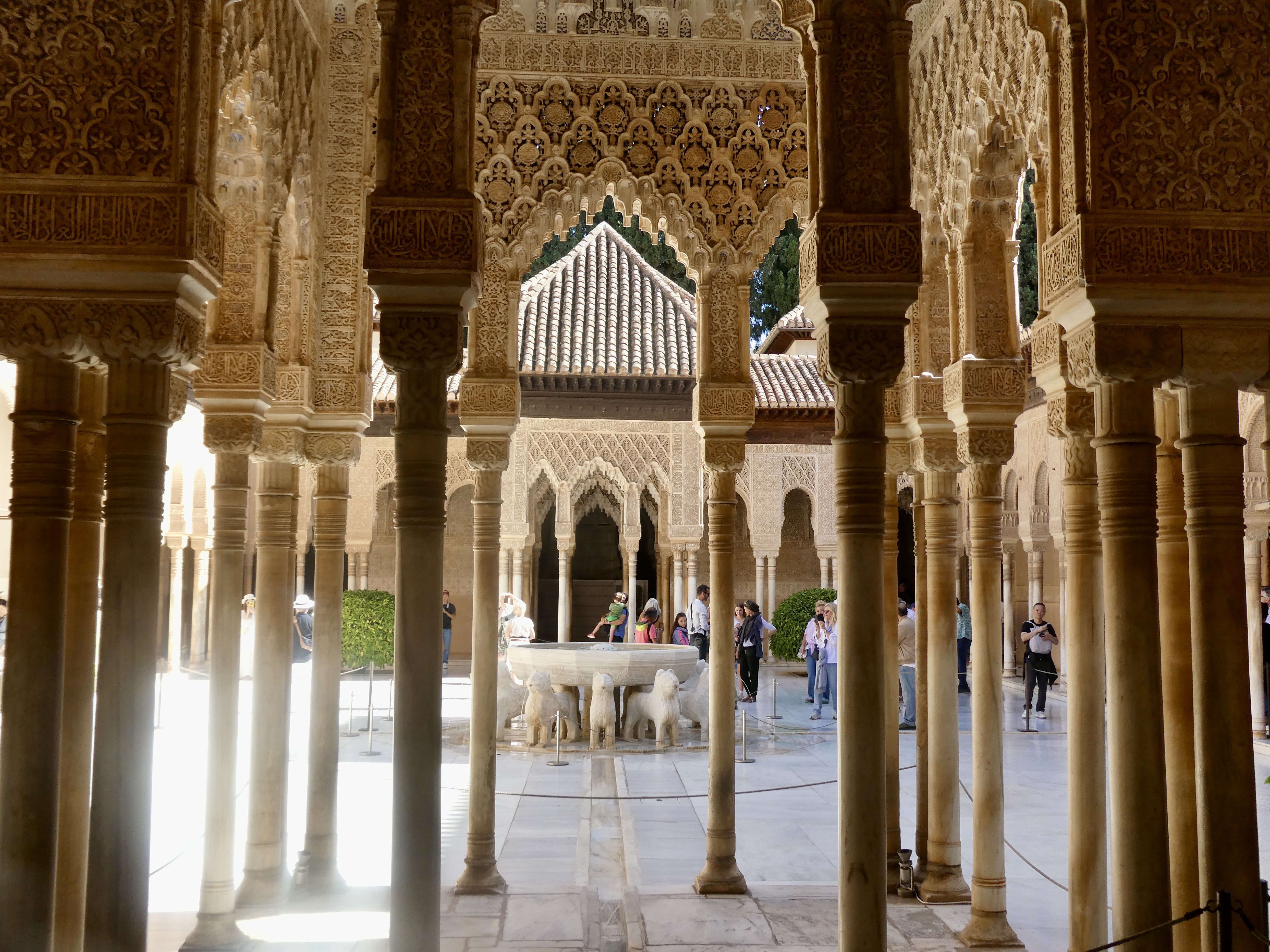 Now this palace is so named because the palace rooms were arranged around a courtyard with a forest of 124 columns and a fountain featuring a number of uniquely designed lions.