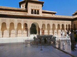 We then moved through yet another arched doorway to the Palace or Court of the Lions (Palacio de los Leones), which was constructed in the mid 14th century and was the private palace of the sultan where the Harem and the wives quarters were located.