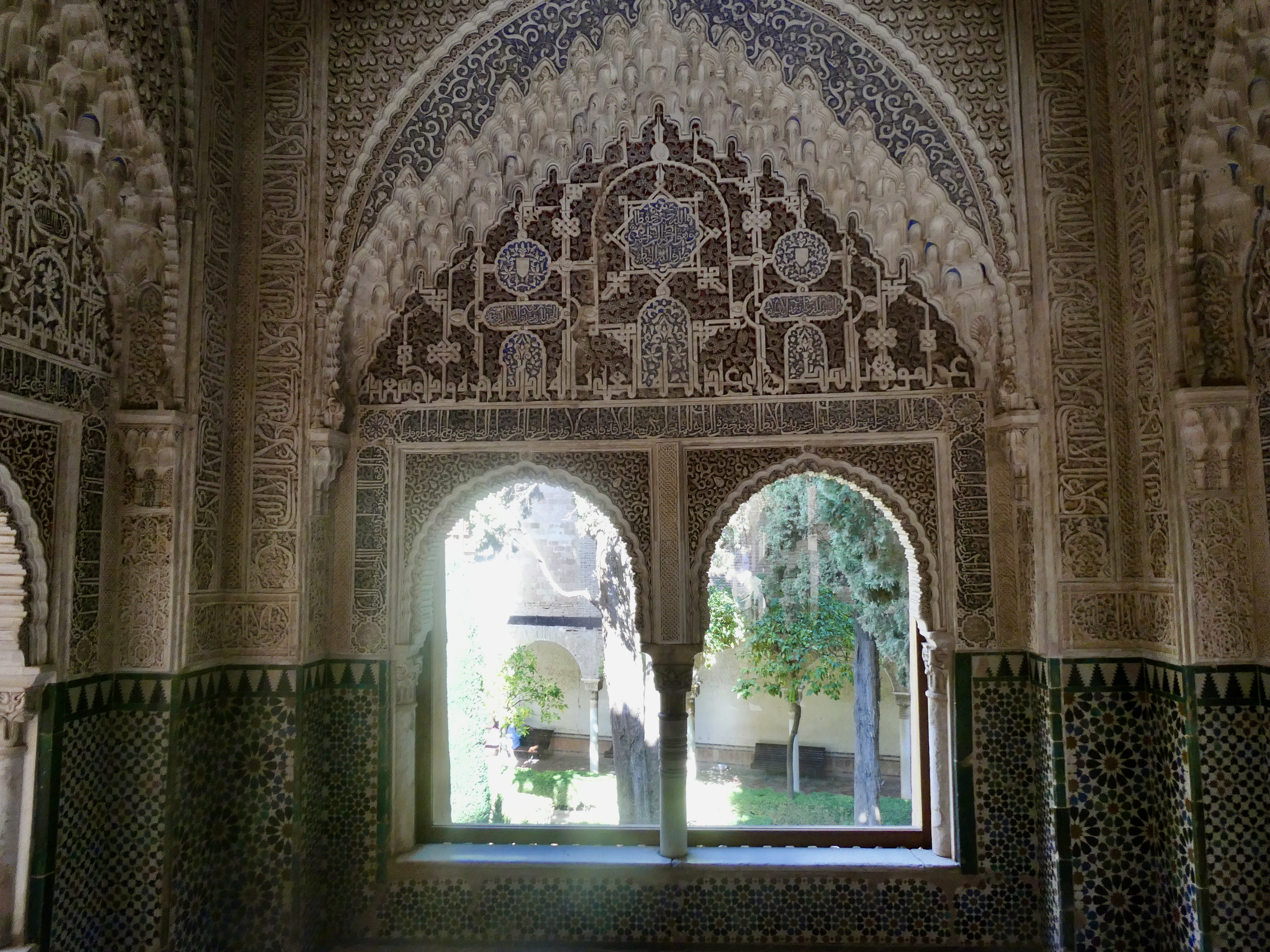 We walked through one of the alcoves and took the views as well as the old Islamic designs and stucco decorations in some of the porticos before doubling back and outside again.