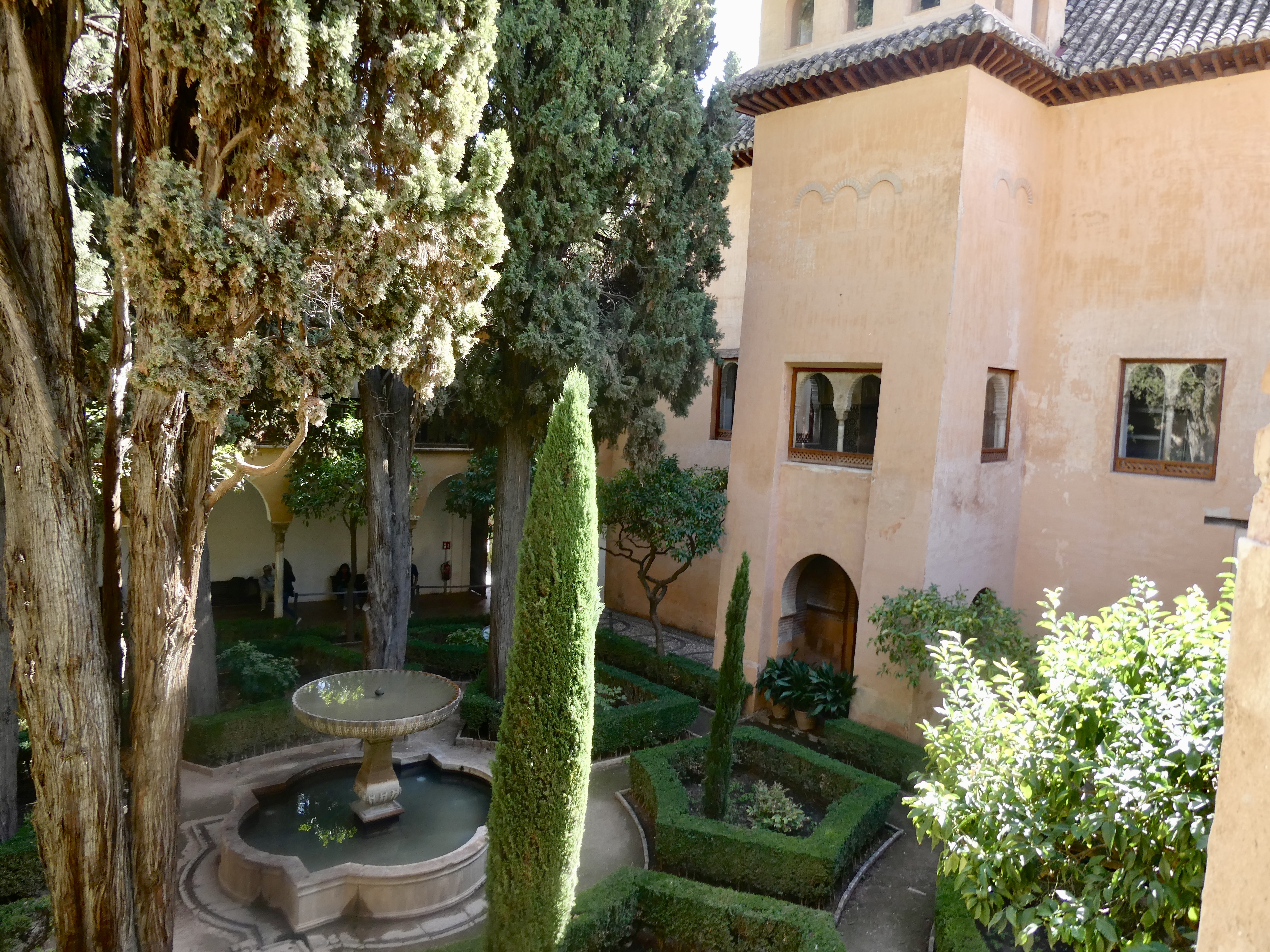 Once admitted, we walked to the far side of the complex to the area known as the Generalife, which was the summer palace of the Sultan. Now the Generalife is surrounded by trees and gardens and can be upwards of 5 degrees cooler in summer, which can make a huge difference in the Granada summer heat.