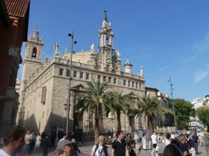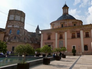 Now the views around the square were quite fabulous looking over to the Cathedral Bridge and the backside of the Cathedral. In addition we had spectacular views to the Real Basilica de la Virgen de los Desamparado. Apparently the inside of the basilica is pretty impressive. However, it was after 1:00 and the basilica closed for siesta time (like so many other places in Spain most things shut down around 1:00 or 2:00 and reopen at 4:00). Anyway, Marco urged me to make a stop back at the basilica during opening hours.