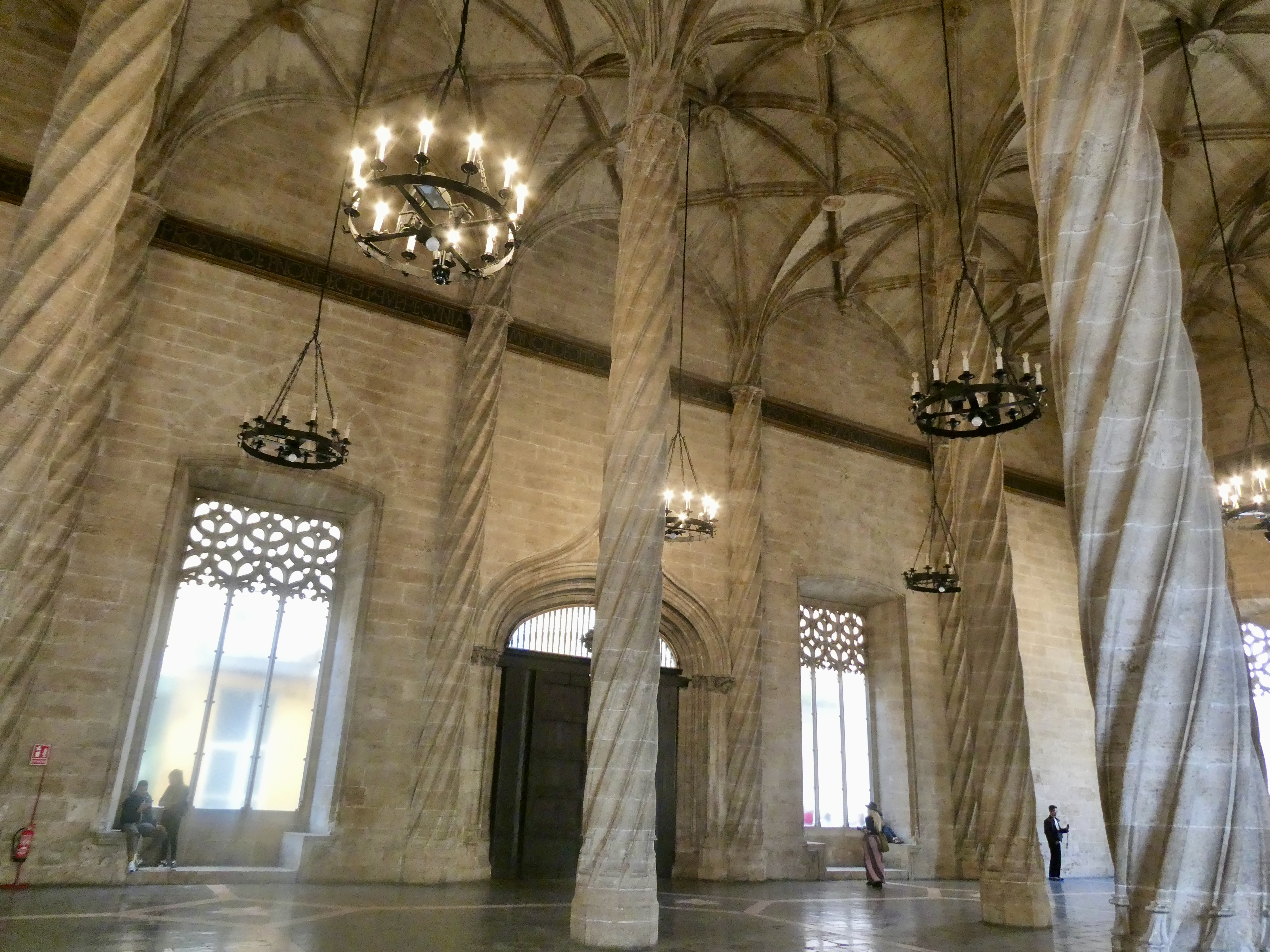 So after battling the crowds in the market, we then walked across the narrow road past a hilarious shop that still had its Christmas decorations up. (My kind of people) and to the La Lonja de la Seda aka the Silk Market/Merchants Exchange, which dates to the 14th and 15th centuries and is a UNESCSO World Heritage site. The building was originally designed to facilitate silk trade, but became the seat of commerce in Valencia during the height of its trading days.