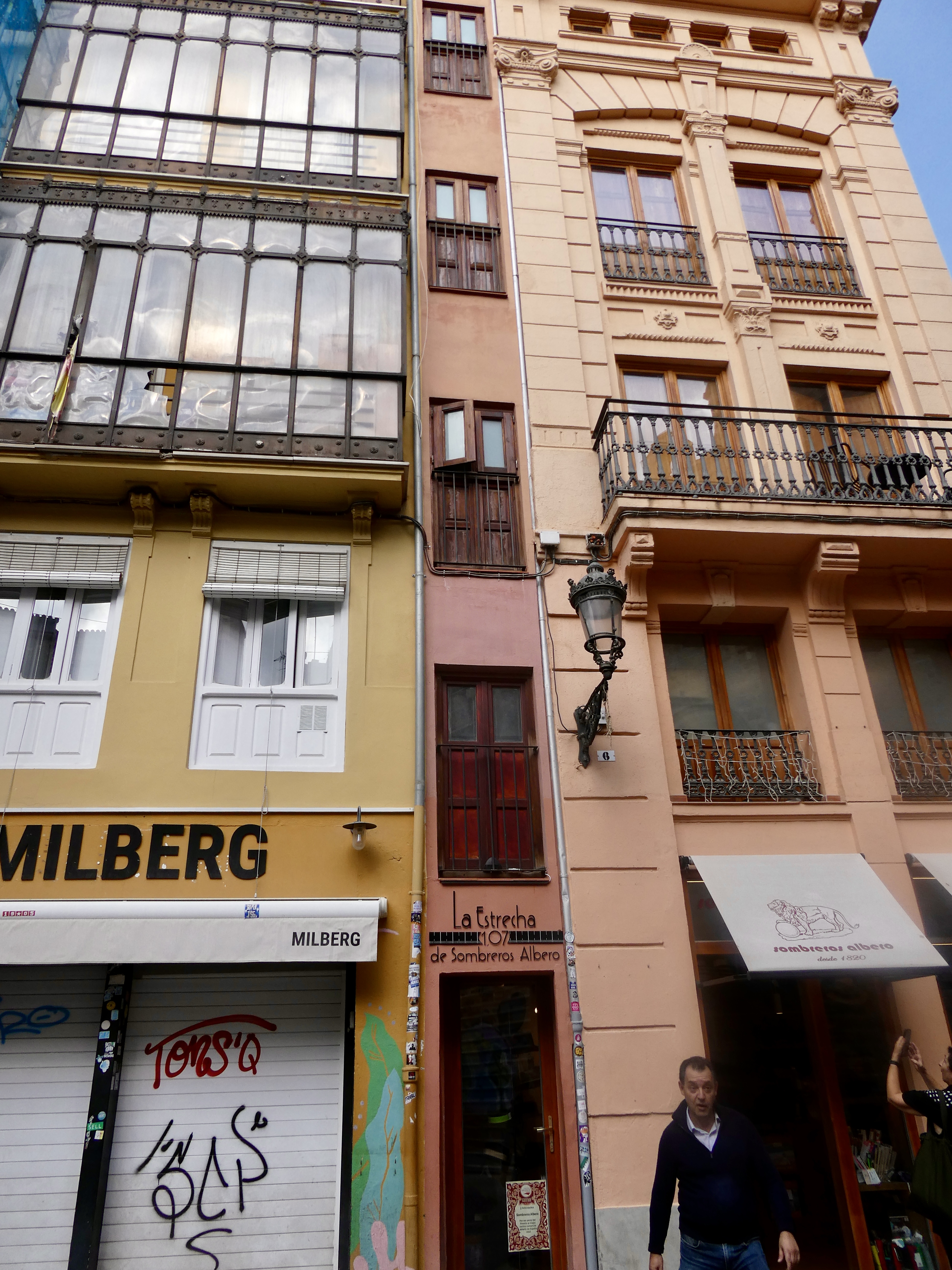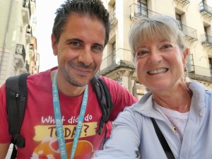 From here, we walked down a narrow alley, past more less notworthy churches (there are churches everywhere in this city) and a narrow and I mean NARROW building (less than 3’ feet wide) that was at one time billed as the narrowest building in the world, but has since lost the title. We then crossed under an arch and into the Plaça Redona, the alleged circular center of the city with, what else, a circular building. And, according to Marco, there used to be some really interesting local stalls here, but now the stalls are filled with tourist junk. Marco found it very sad.