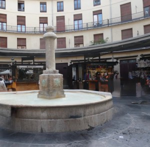 From here, we crossed under the bridge and entered the Plaza de la Virgen, the main square in the old town and at one time the center of activity in the old city. And like so many of these old squares, the square was used during medieval times for public executions. Ugh.