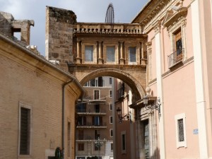 From here, we walked down more narrow alleys reaching the Portal de Valldigna aka Portal of the Valley of Dignity. This portal is one of the last surviving arches that was built into the ancient Muslim walls. The portal served as a gateway into the old Valencia medieval city in an area where the noble families were living. The portal opened in 1400 and contains a Muslim inscription of inspiration.