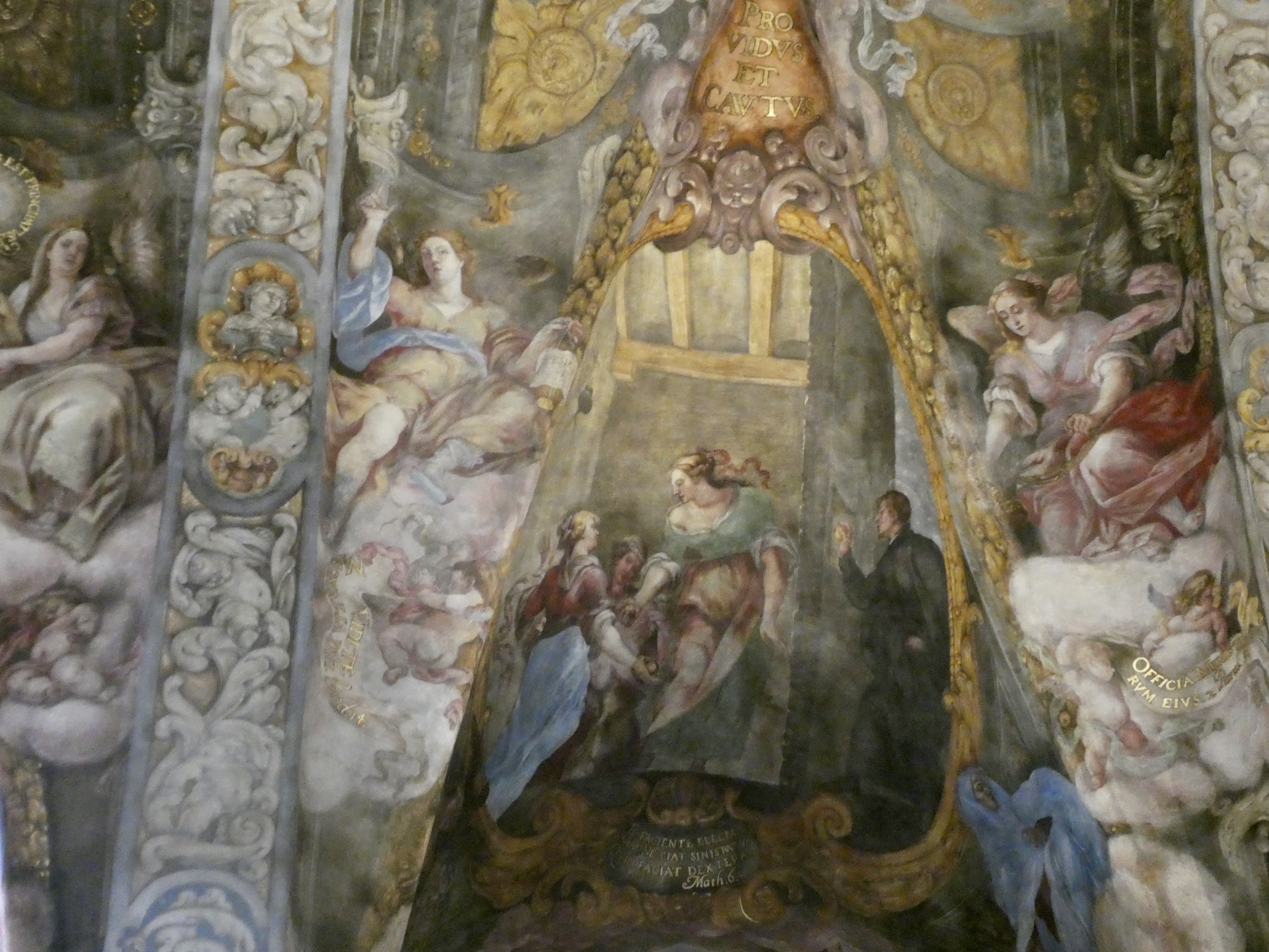 We wandered around as Marco pointed out a couple of significant chapels before heading back outside. And as luck would have it, the door of a former palace that was built across from the church was open allowing us to have a look inside at a lovely open courtyard, which is a feature of so many of these old palace homes in the area.