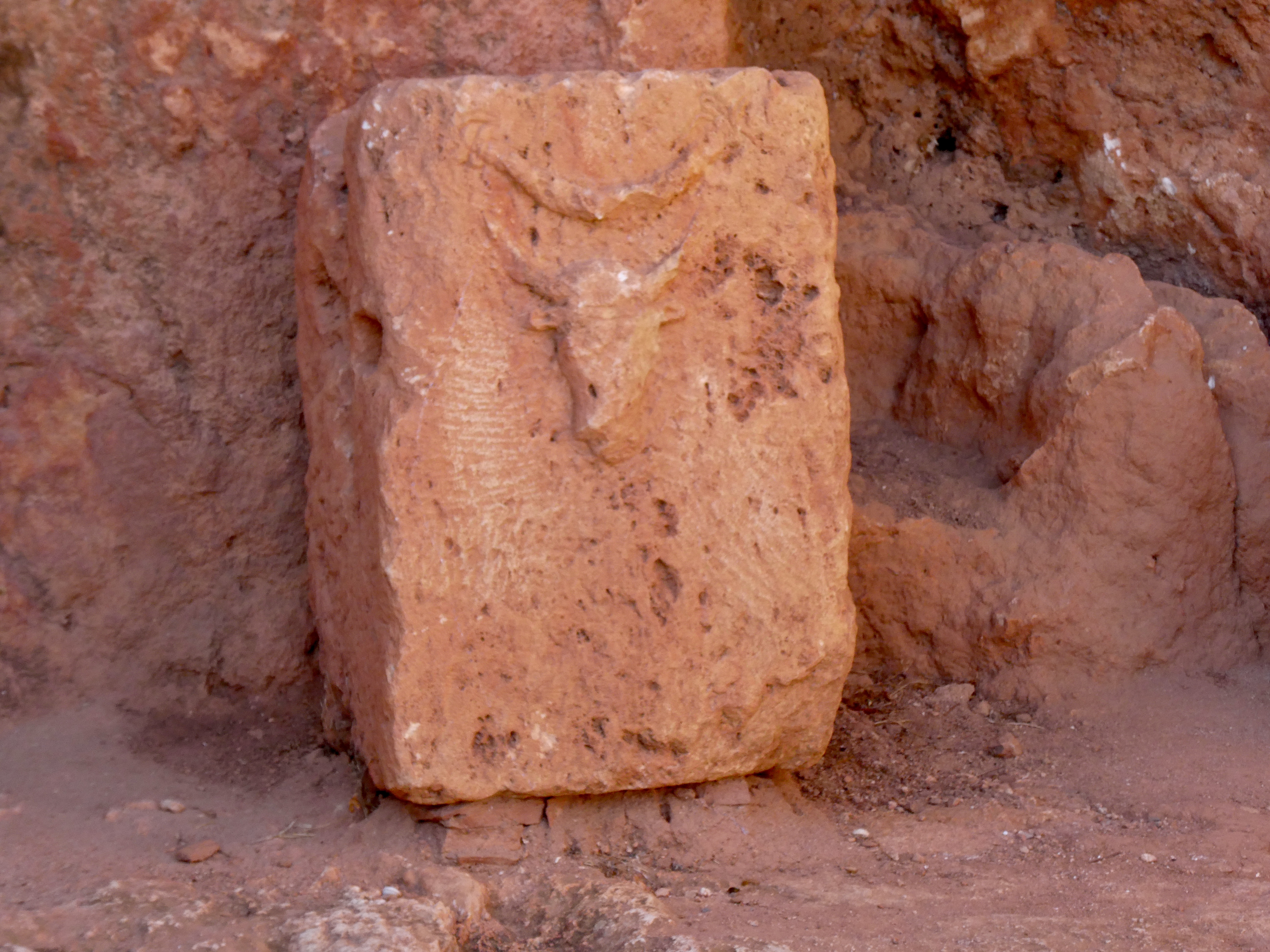 So after we passed through the arch and walked along the Roman road, we stopped at the first of a number of temples. The first temple was the Temple of Mithra, an ancient Persian deity associated with justice, sunlight and contracts. Apparently Roman soldiers had a strong attachment to Mithra hence the importance of the temple at the fortress. And bulls were often sacrificed as a form of worship to Mithra. As a result, there were a number of bull carvings on stones in the temple.