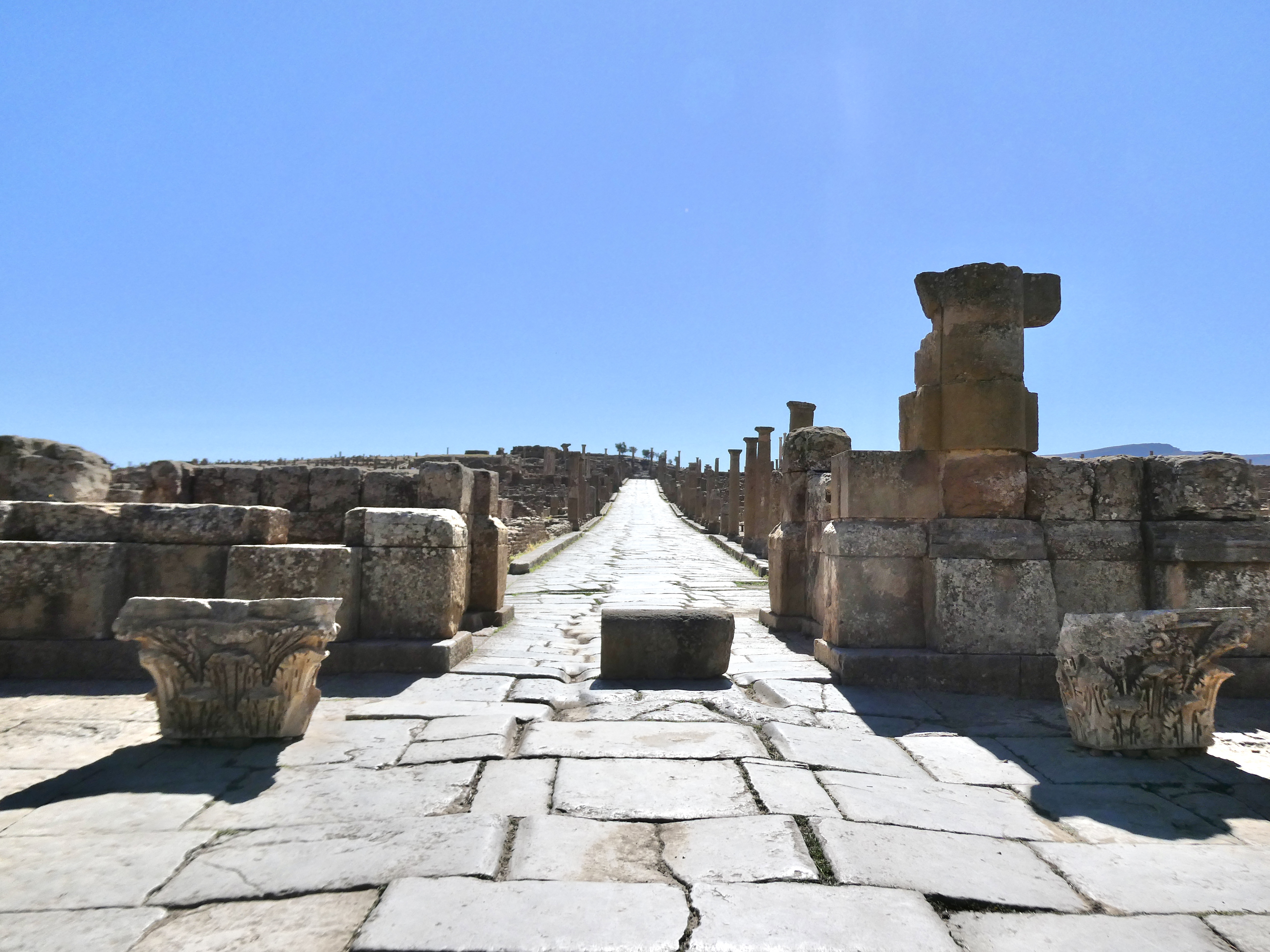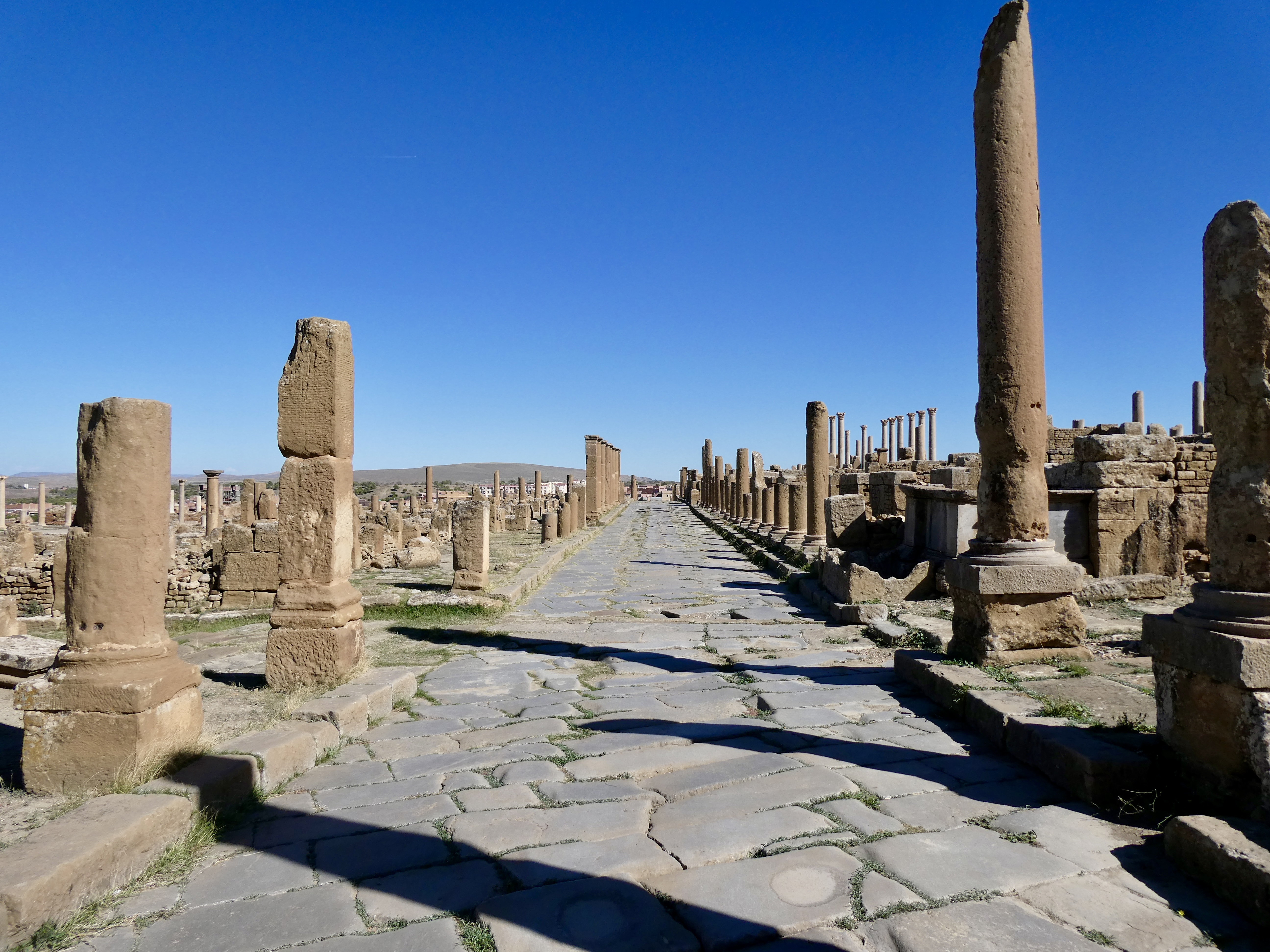 Anyway, our trip around Timgad had come to an end. We wandered away from the arch past the colonnades that lined the road before turning back onto the north south road and out of the entrance.