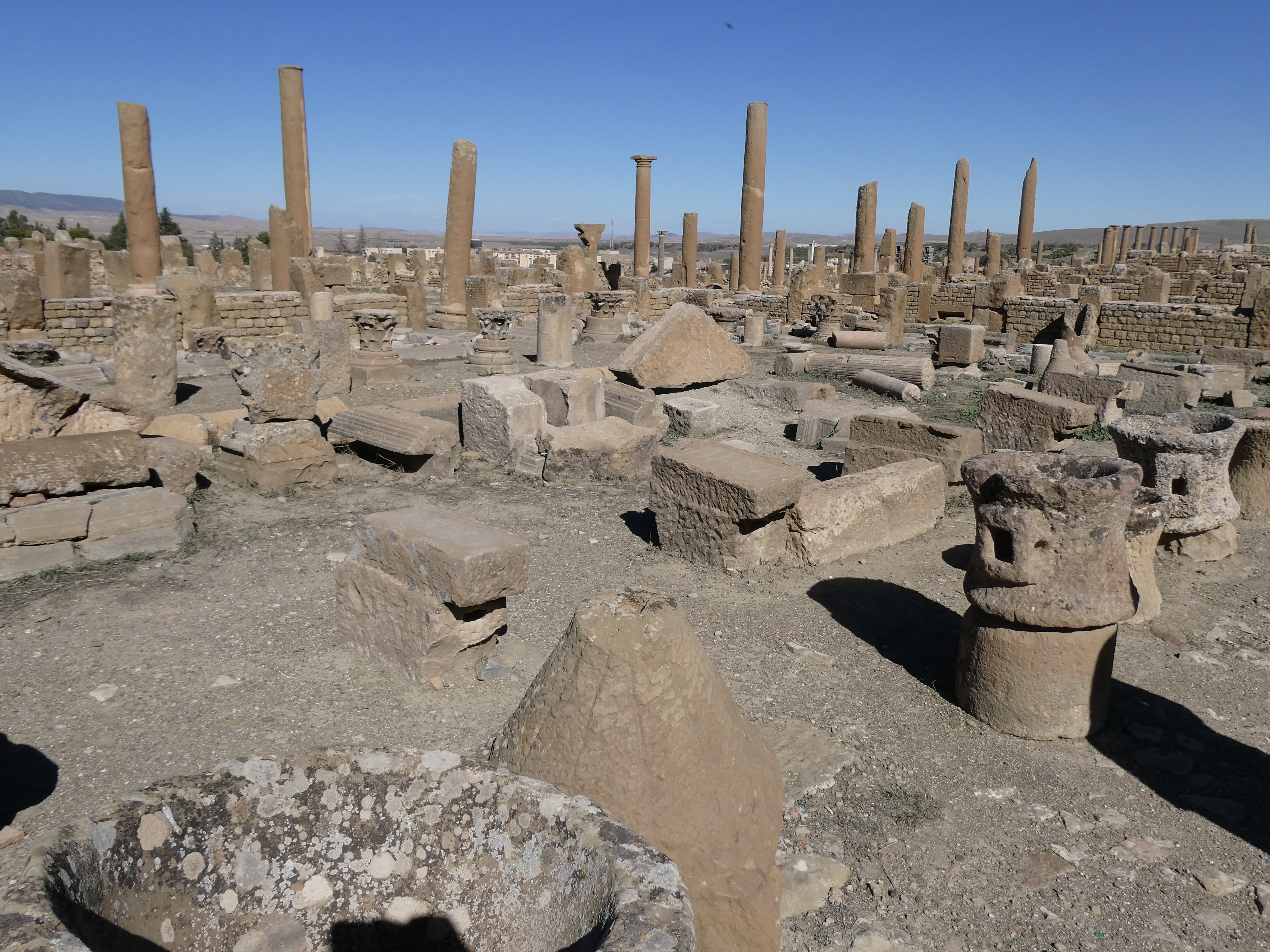 From here, we crossed a pathway and walked over to the actual Timgad ruins. Now Timgad