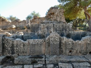 After walking around the site for an inordinate amount of time, we took the path down a very, very step hill (with stairs in parts of the path) down to the area I could see from above. Along the way we passed the old garum factory, which was originally built around the 1st century AD where fish sauce was produced. The factory continued production until the city was destroy in the 7th century.